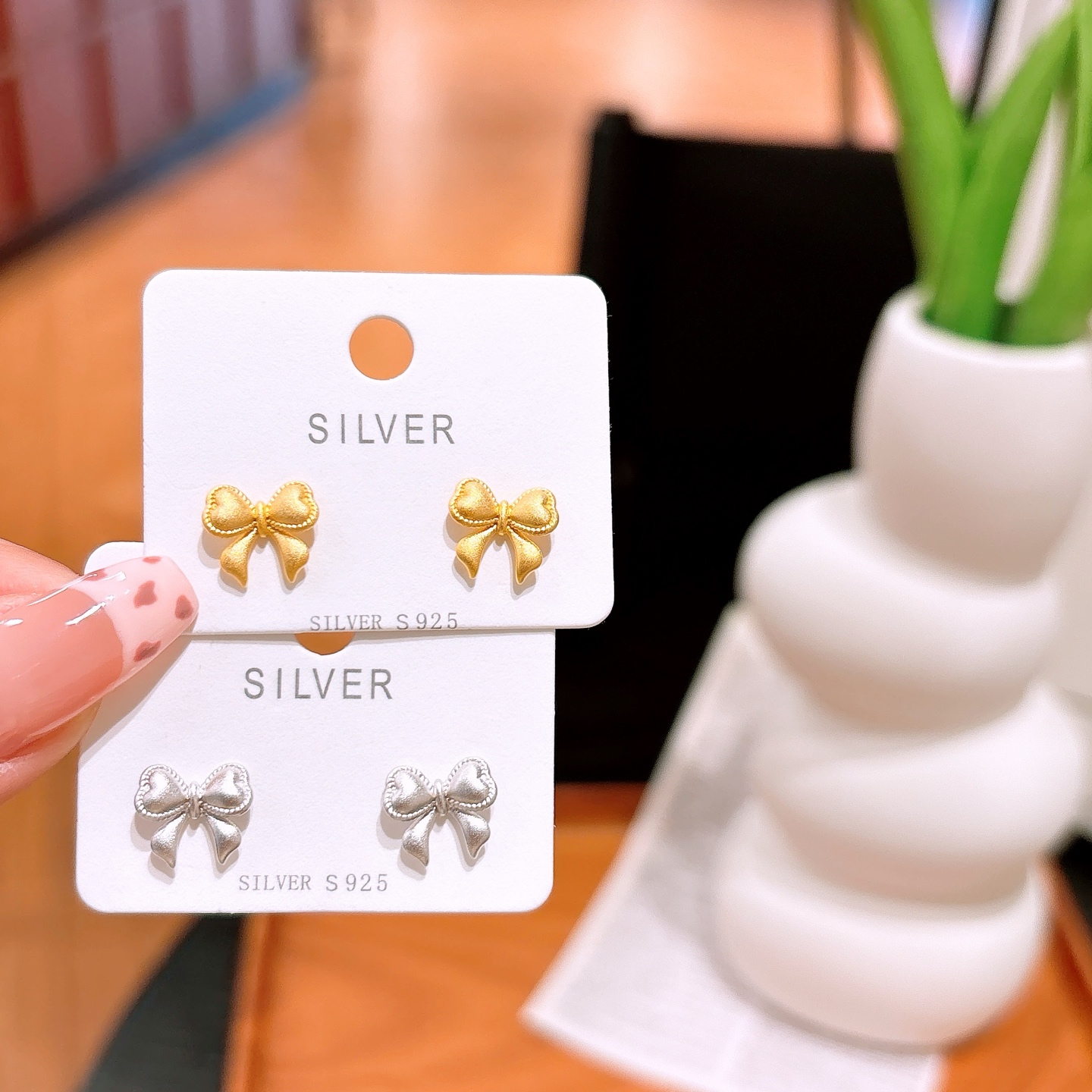 Low Allergy Silver Earrings Sweet New Year Gold
