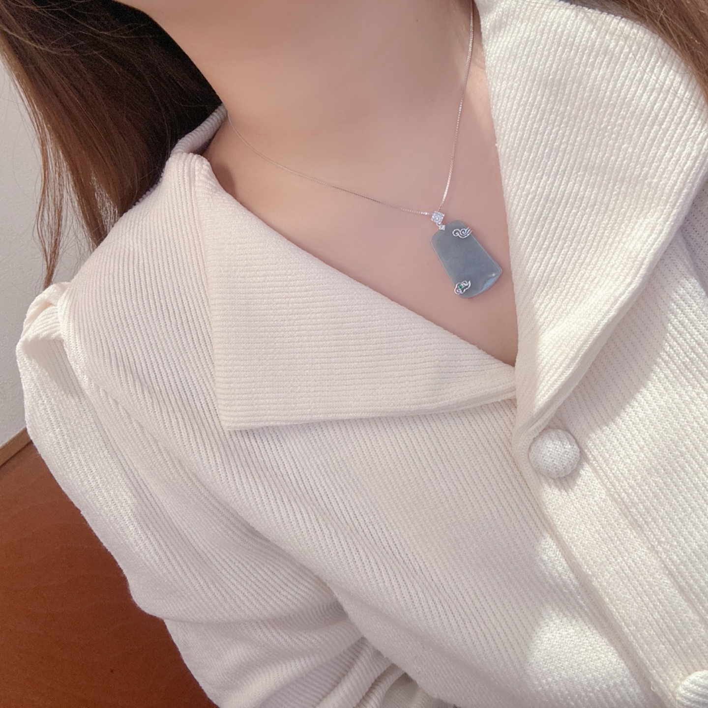 S925 Sterling Silver Jadeite Necklace Artistic Gift for Her Silver