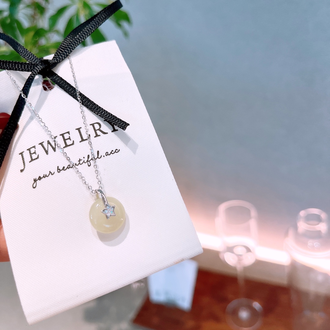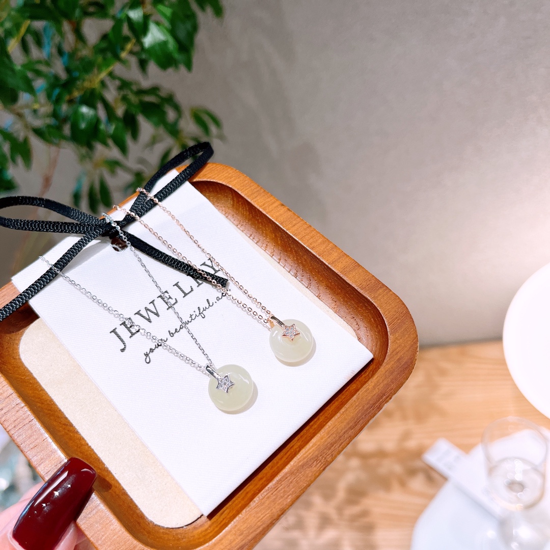 925 Silver Hetian Jade Necklace Korean Style Engagement Silver