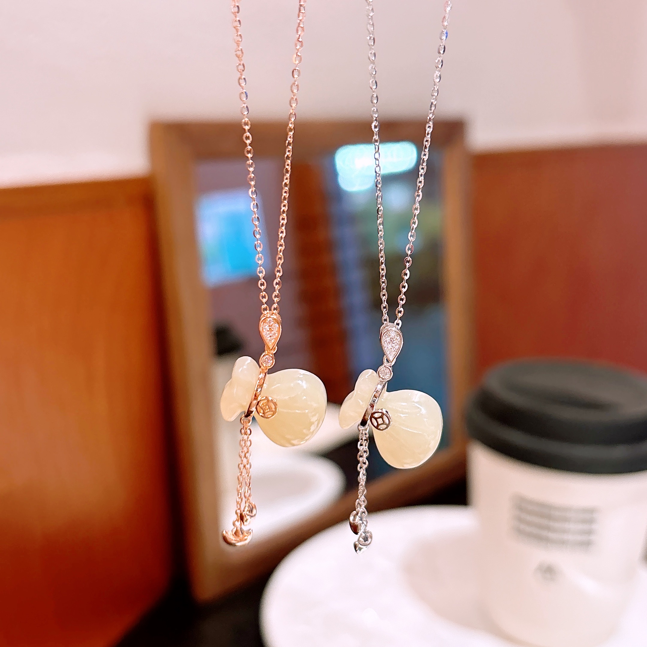 Hypoallergenic Silver Hetian Jade Necklace Playful Travel Silver