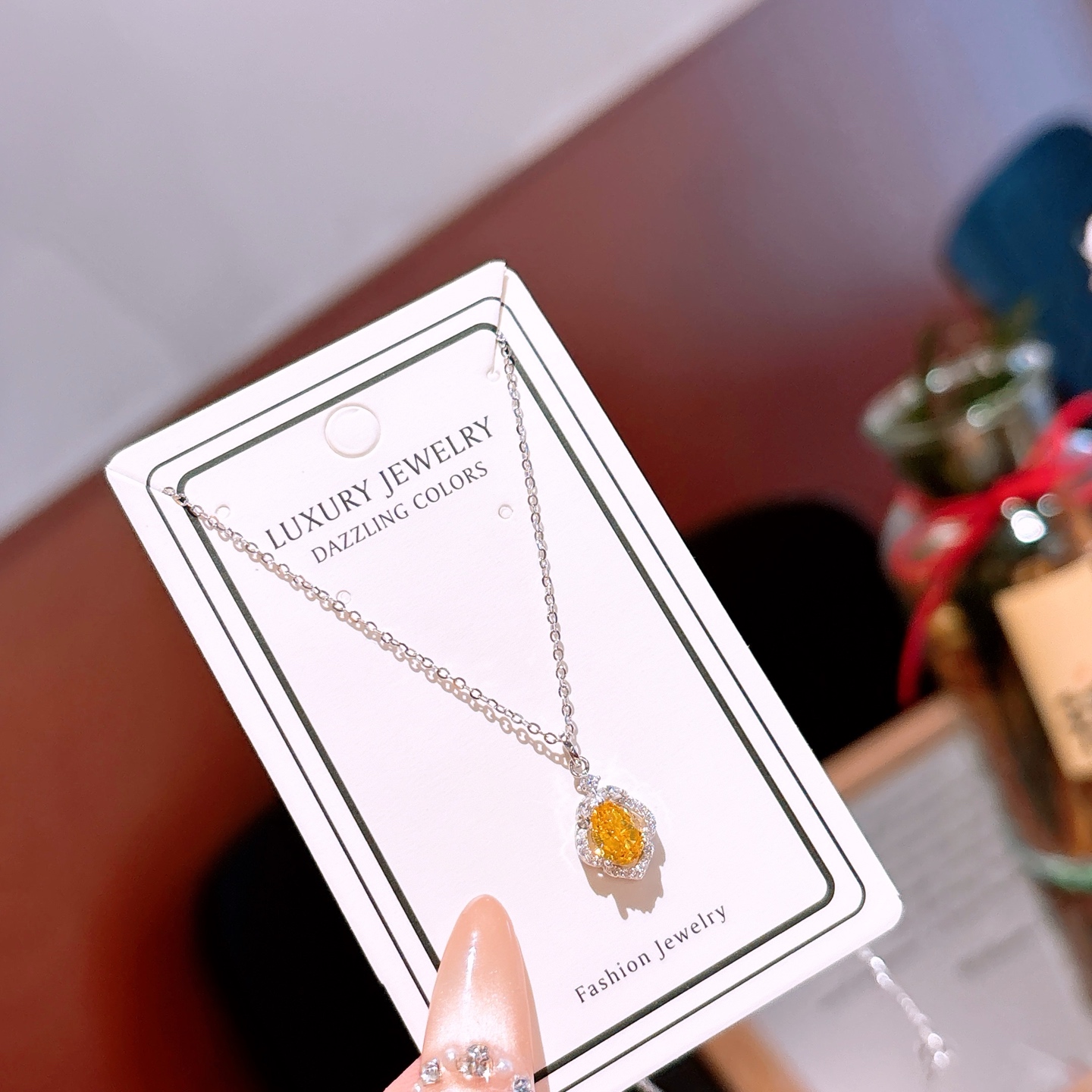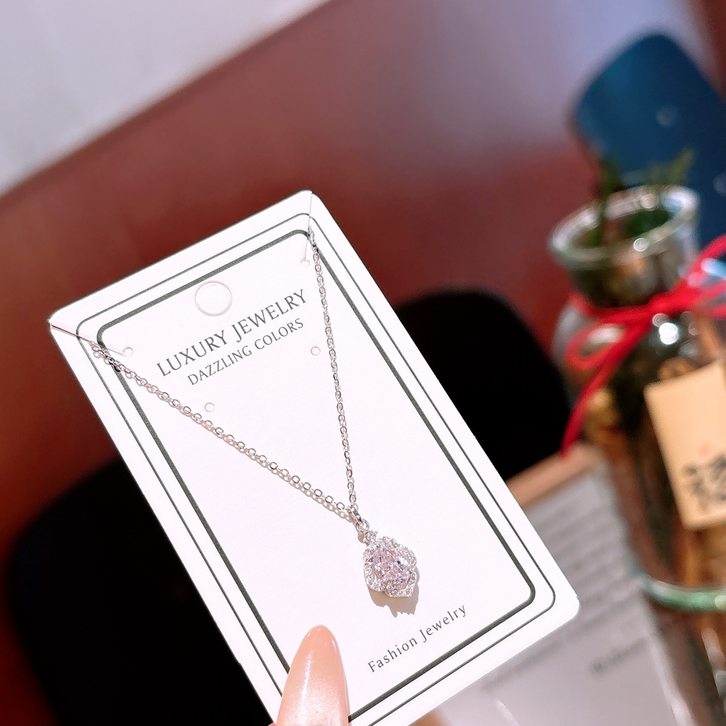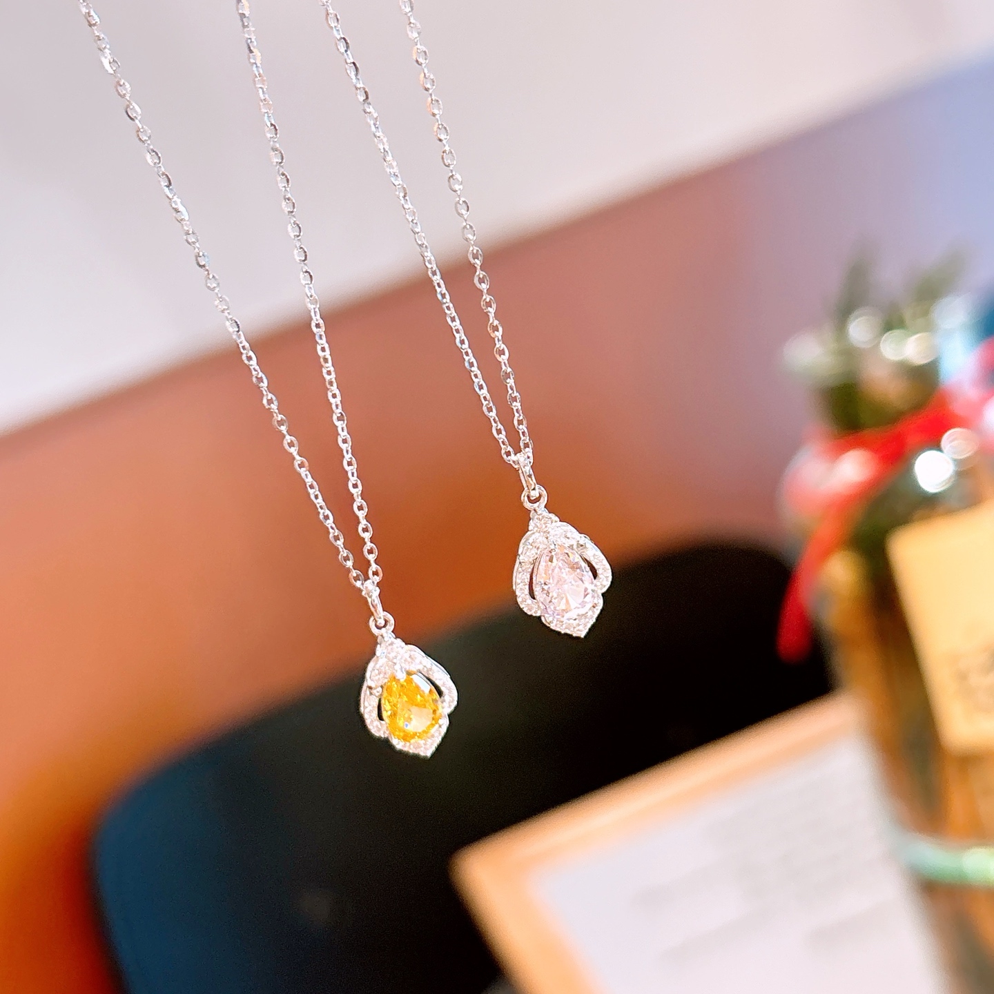 Fine Silver High Carbon Diamond Necklace French New Year Gold