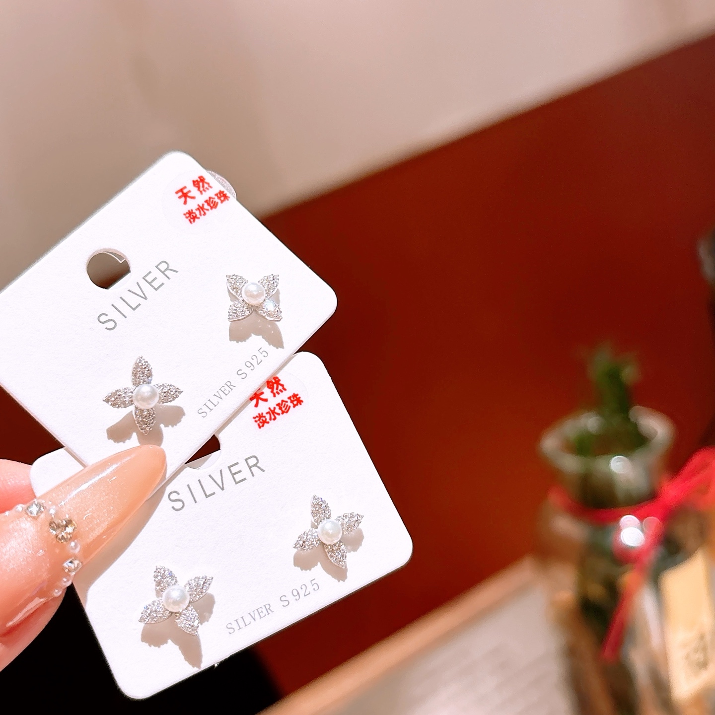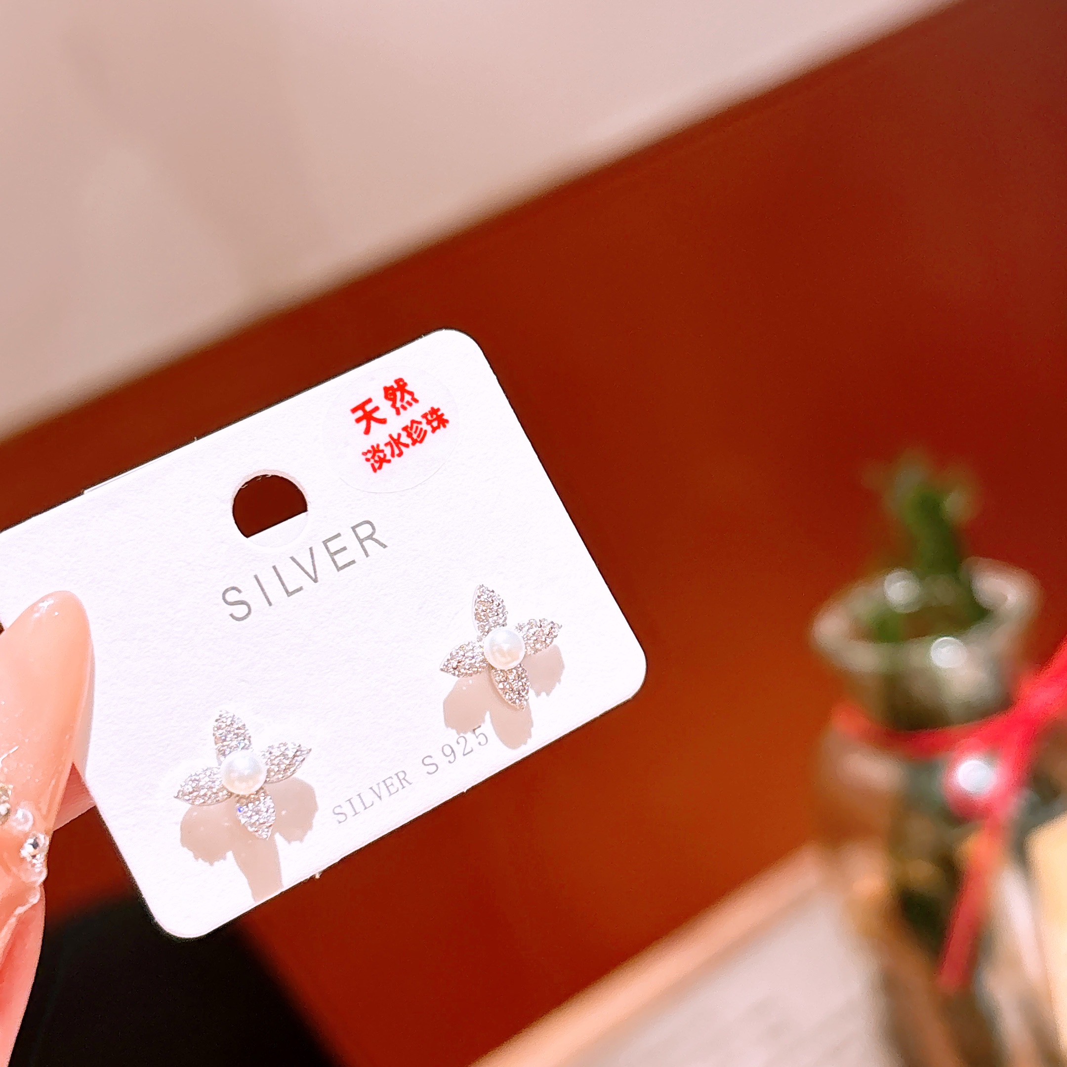 Solid Silver Freshwater Pearl Studs Fashion New Year Gold