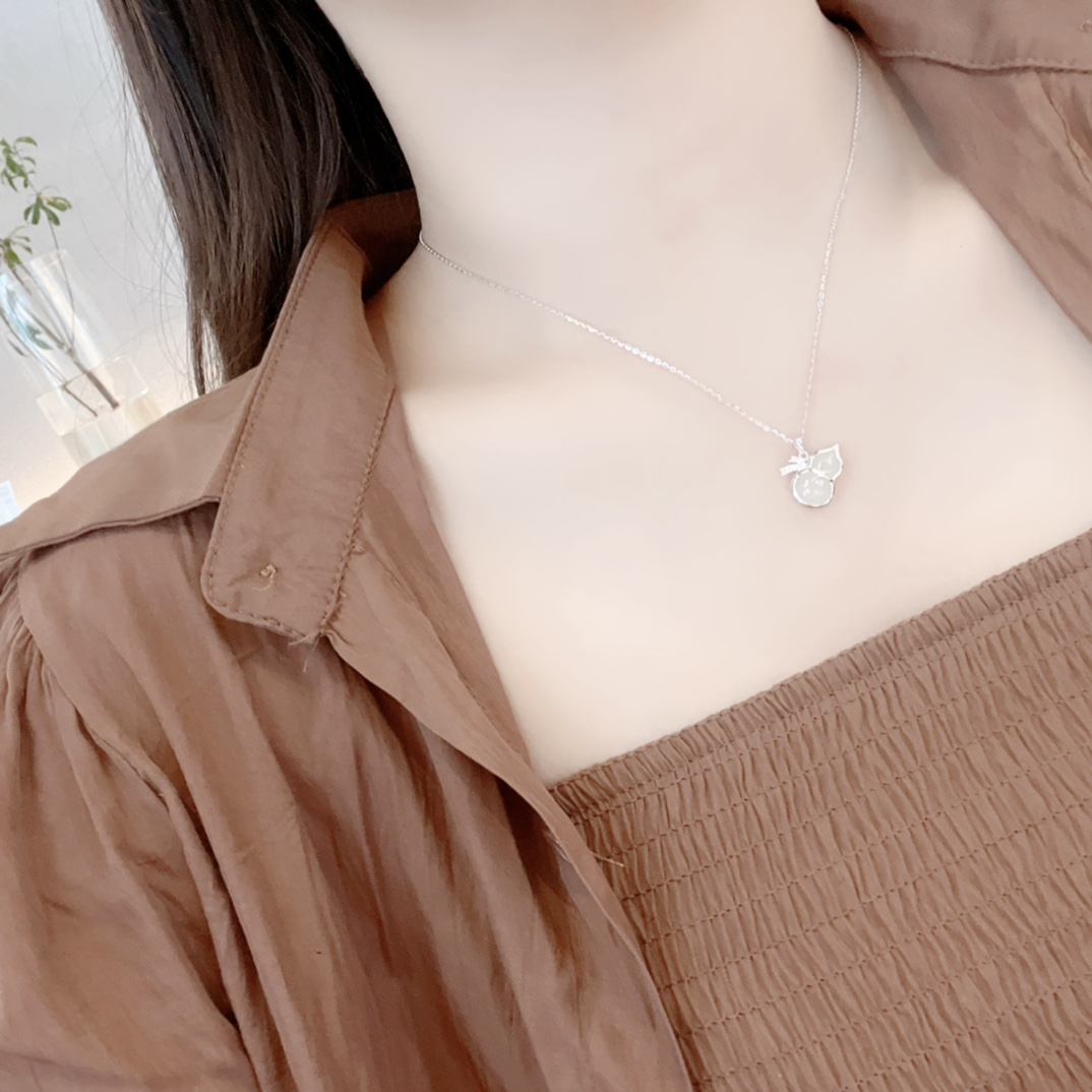 Solid Silver Hetian Jade Necklace Intellectual Housewarming Silver