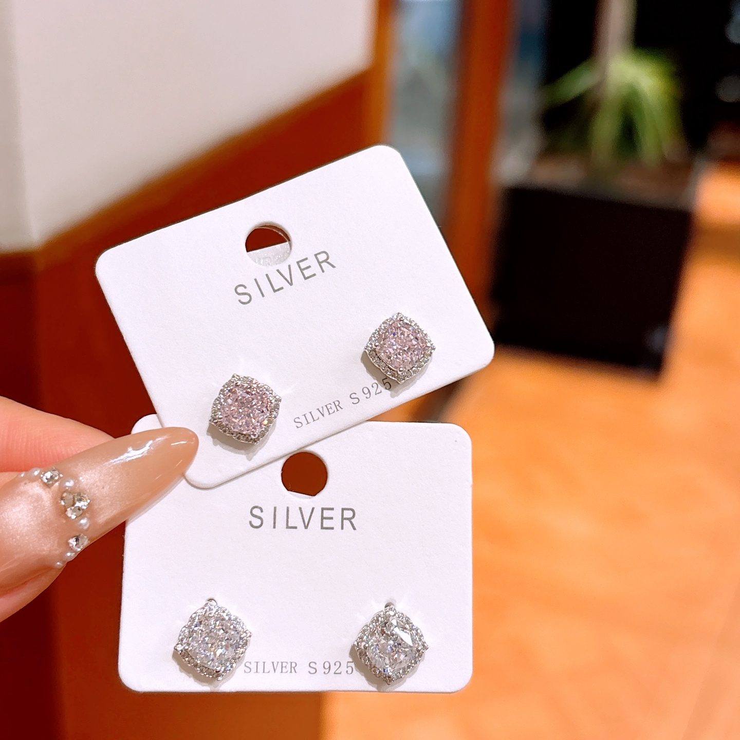 Fine Silver High Carbon Diamond Studs Intellectual Banquet Silver