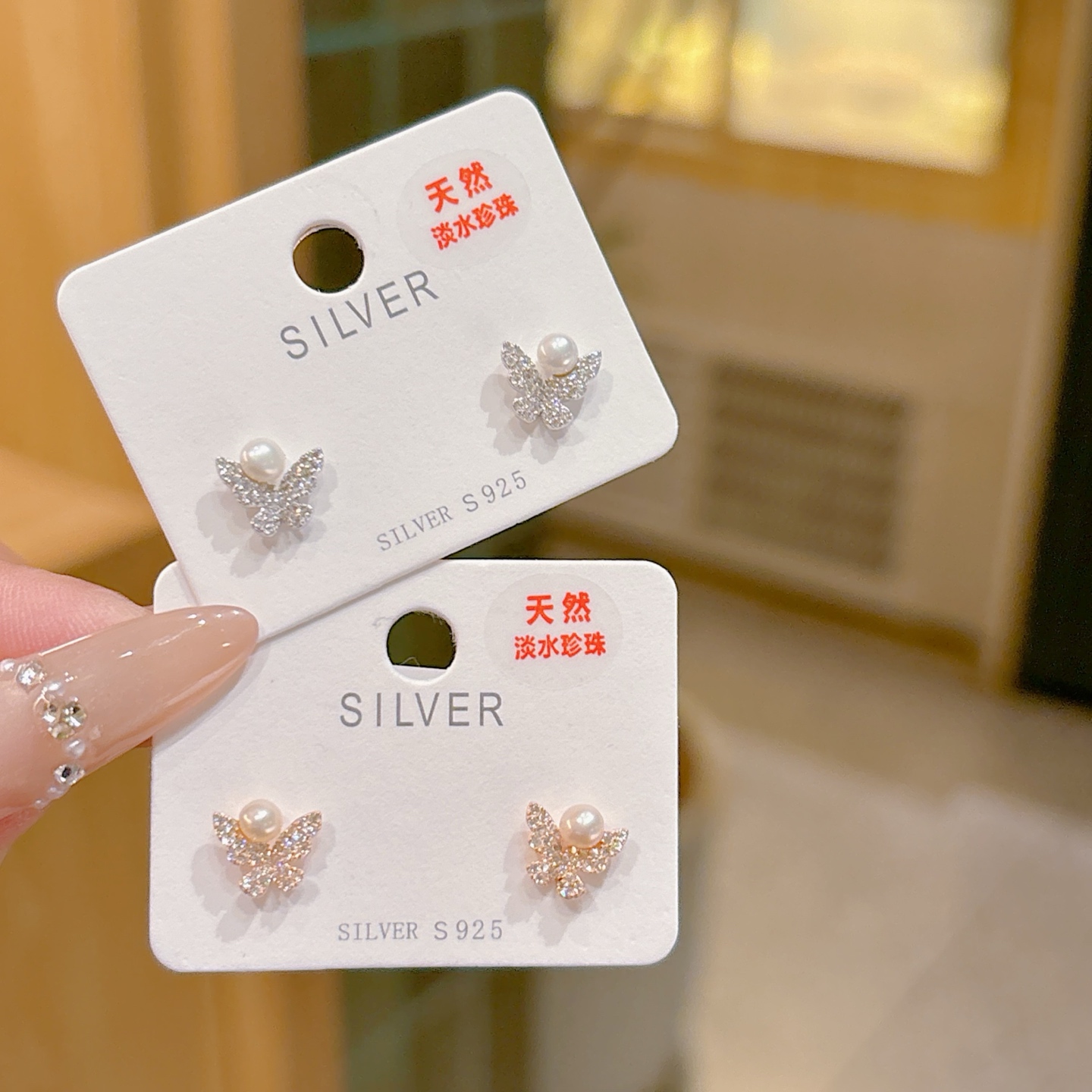 Fine Silver Freshwater Pearl Studs Playful Annual Party Gold