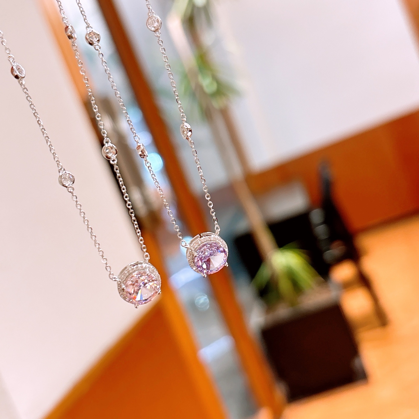 Hypoallergenic Silver High Carbon Diamond Necklace Delicate Spring Festival