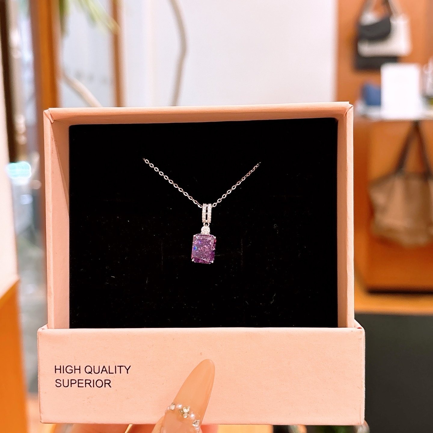 High Polish Silver High Carbon Diamond Necklace Korean Style Proposal