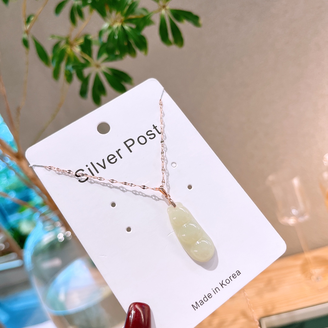 Solid Silver Hetian Jade Necklace Sweet & Cool Spring Festival Silver
