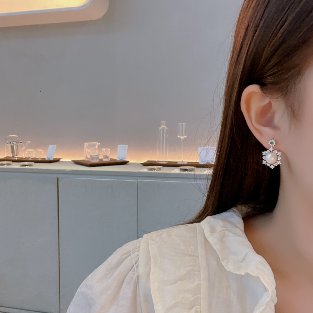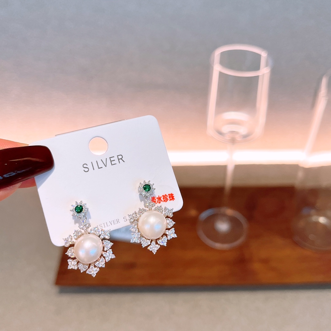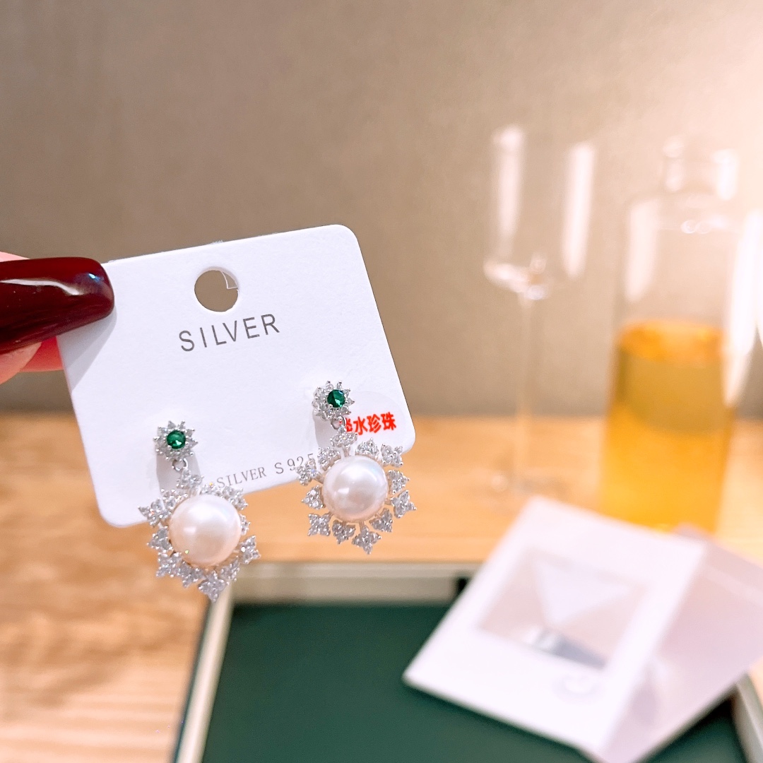 S925 Sterling Silver Freshwater Pearl Studs Ins Style Spring Festival