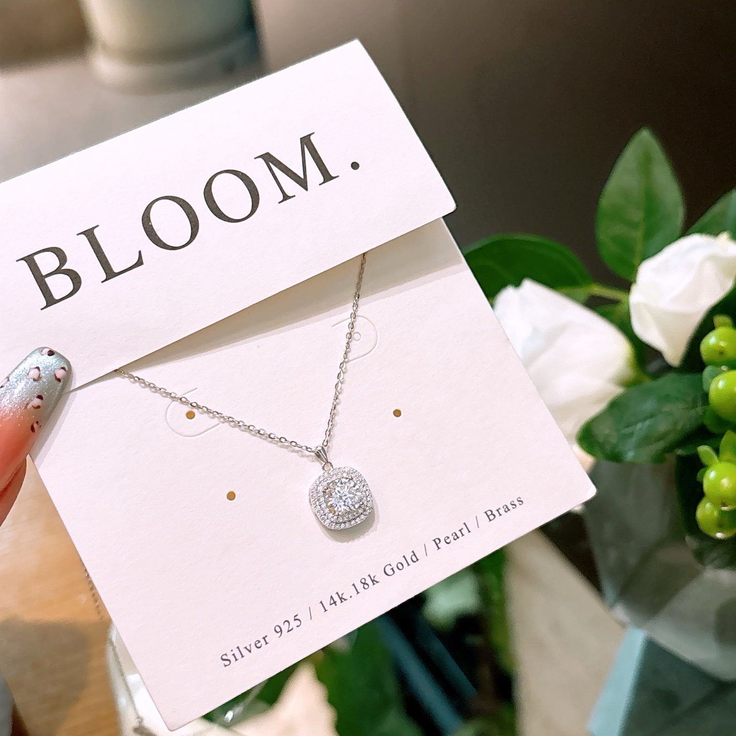 High Polish Silver Moissanite Necklace Dainty Teacher's Day Silver