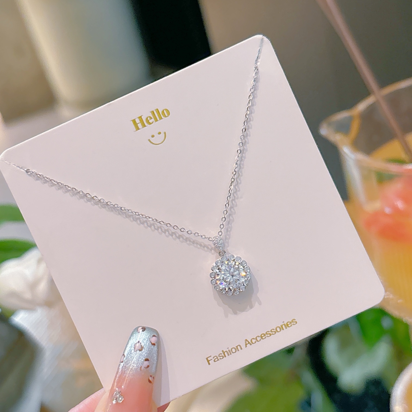 Hypoallergenic Silver Moissanite Necklace French Mother's Day Gold