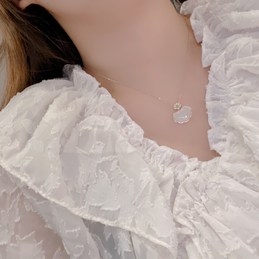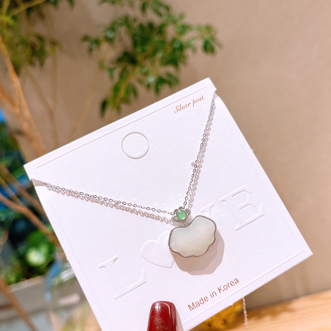 Solid Silver Hetian Jade Necklace Korean Style New Year Silver