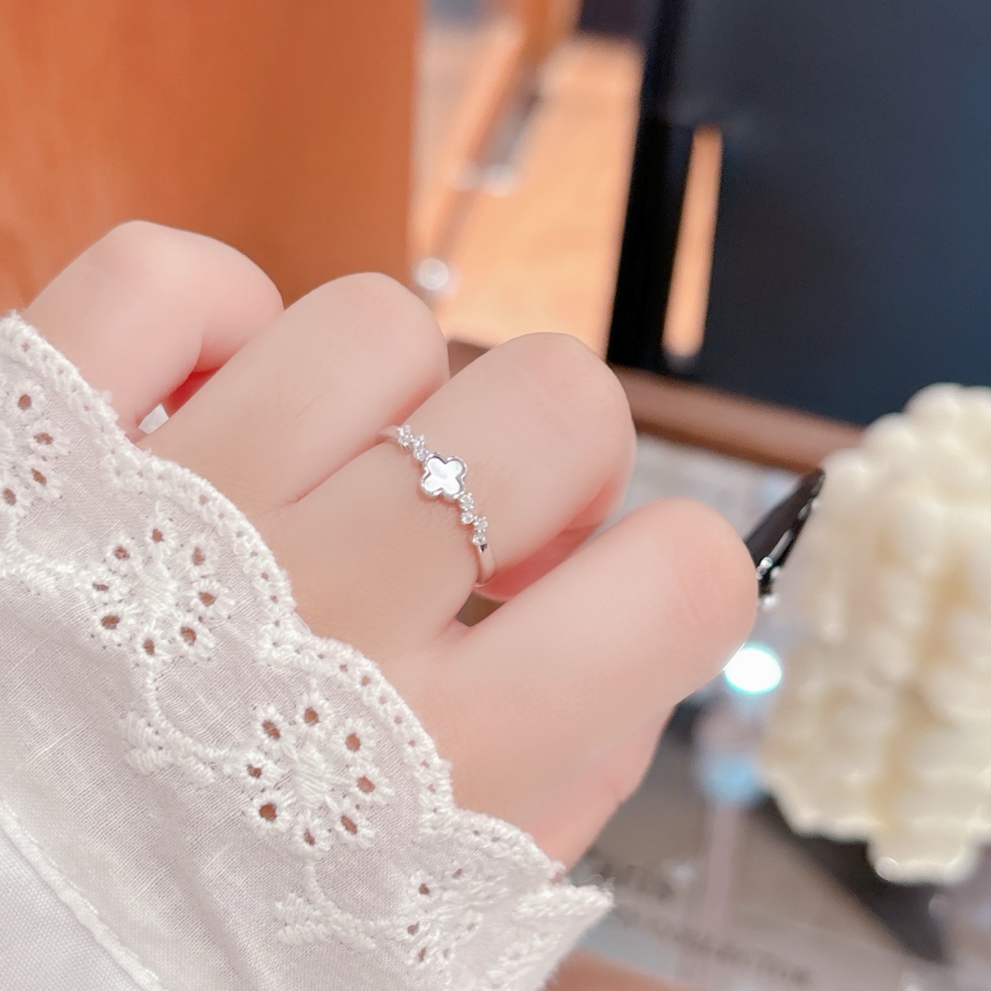 Solid Silver Ring Light Luxury Mother's Birthday Gold