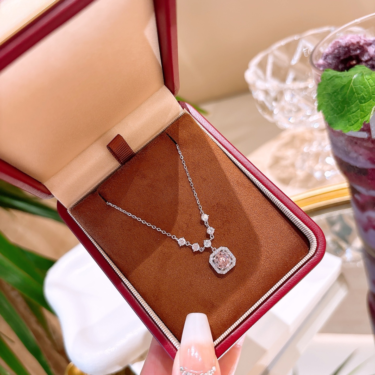 925 Silver High Carbon Diamond Necklace Light Luxury Banquet Gold