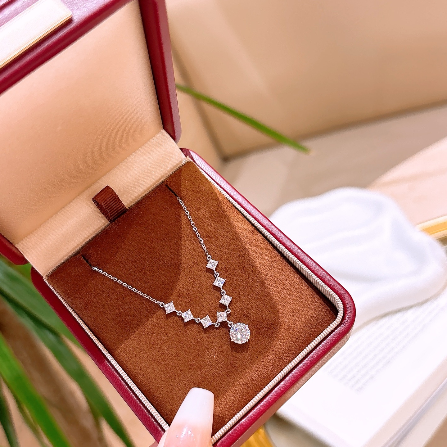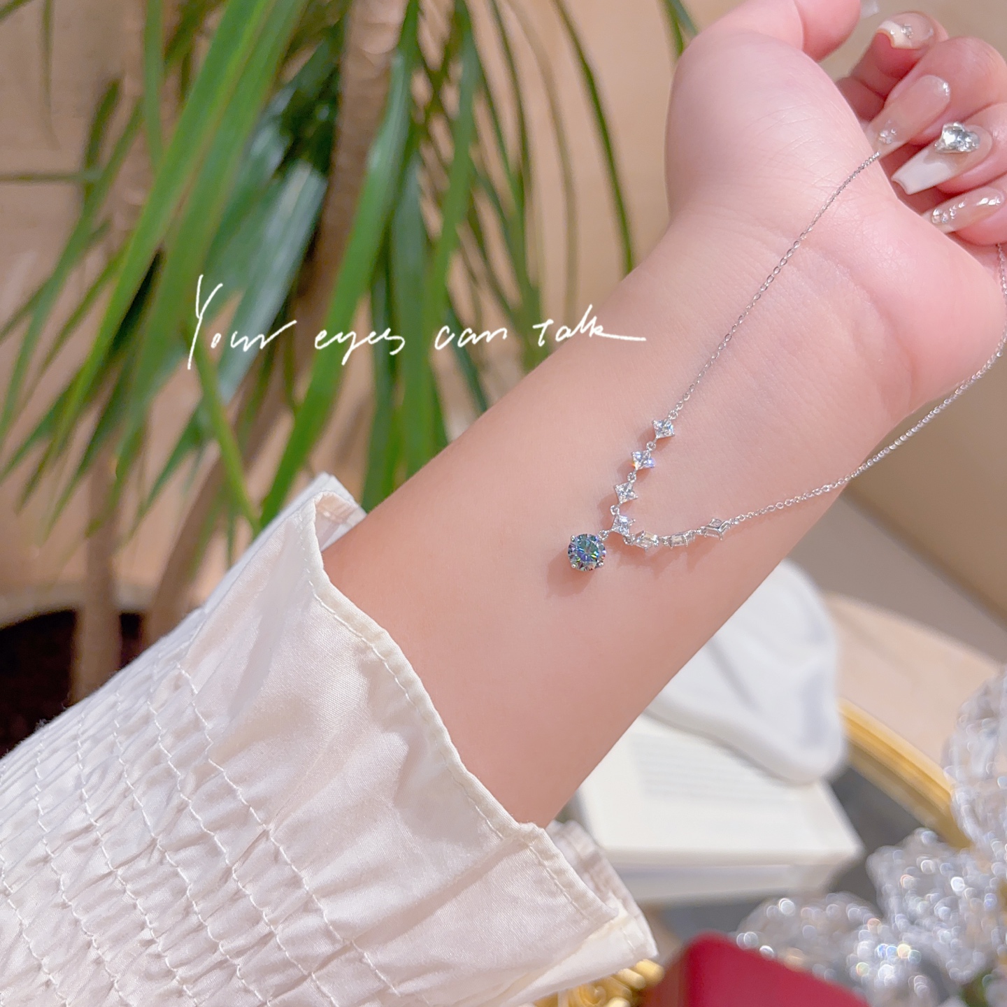 925 Silber Moissanit Kette Elegant Hochzeitsgeschenk Silber
