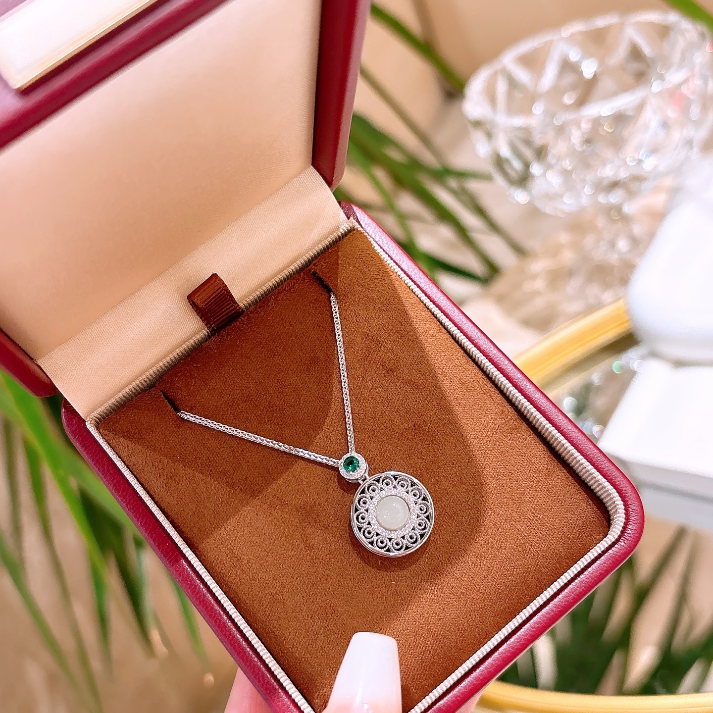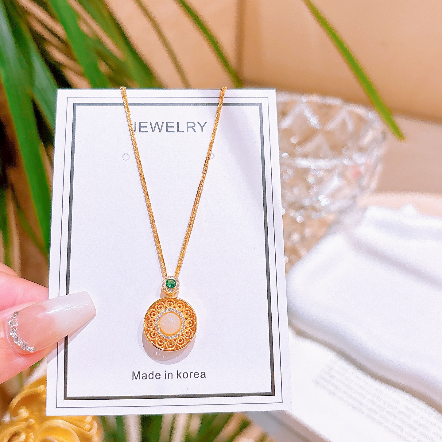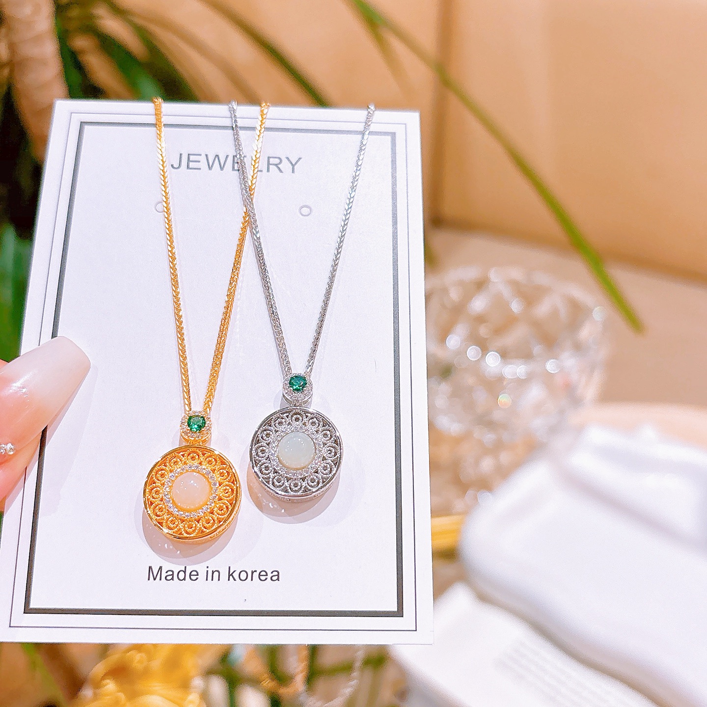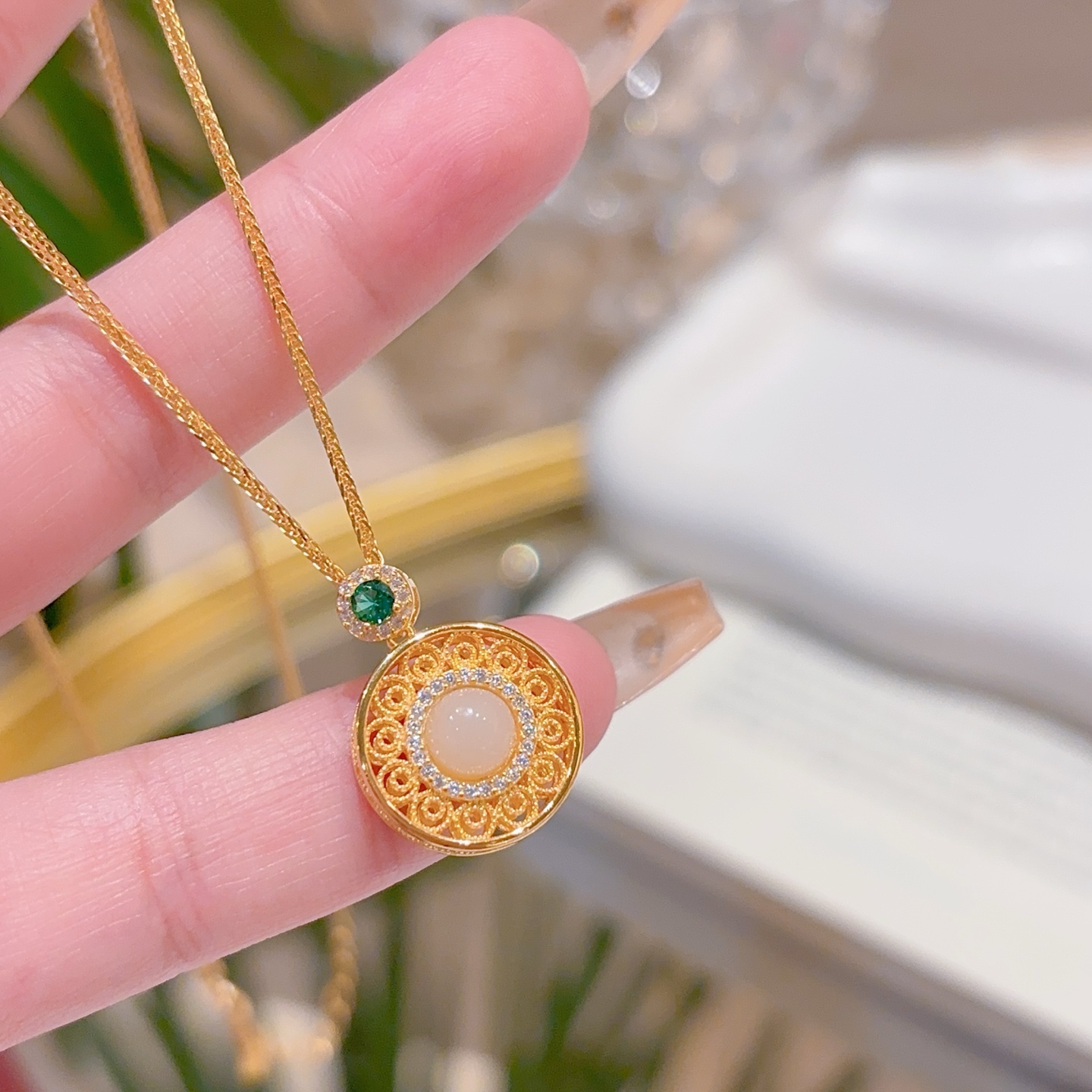 Hypoallergenic Silver Hetian Jade Necklace Girly Birthday Gold