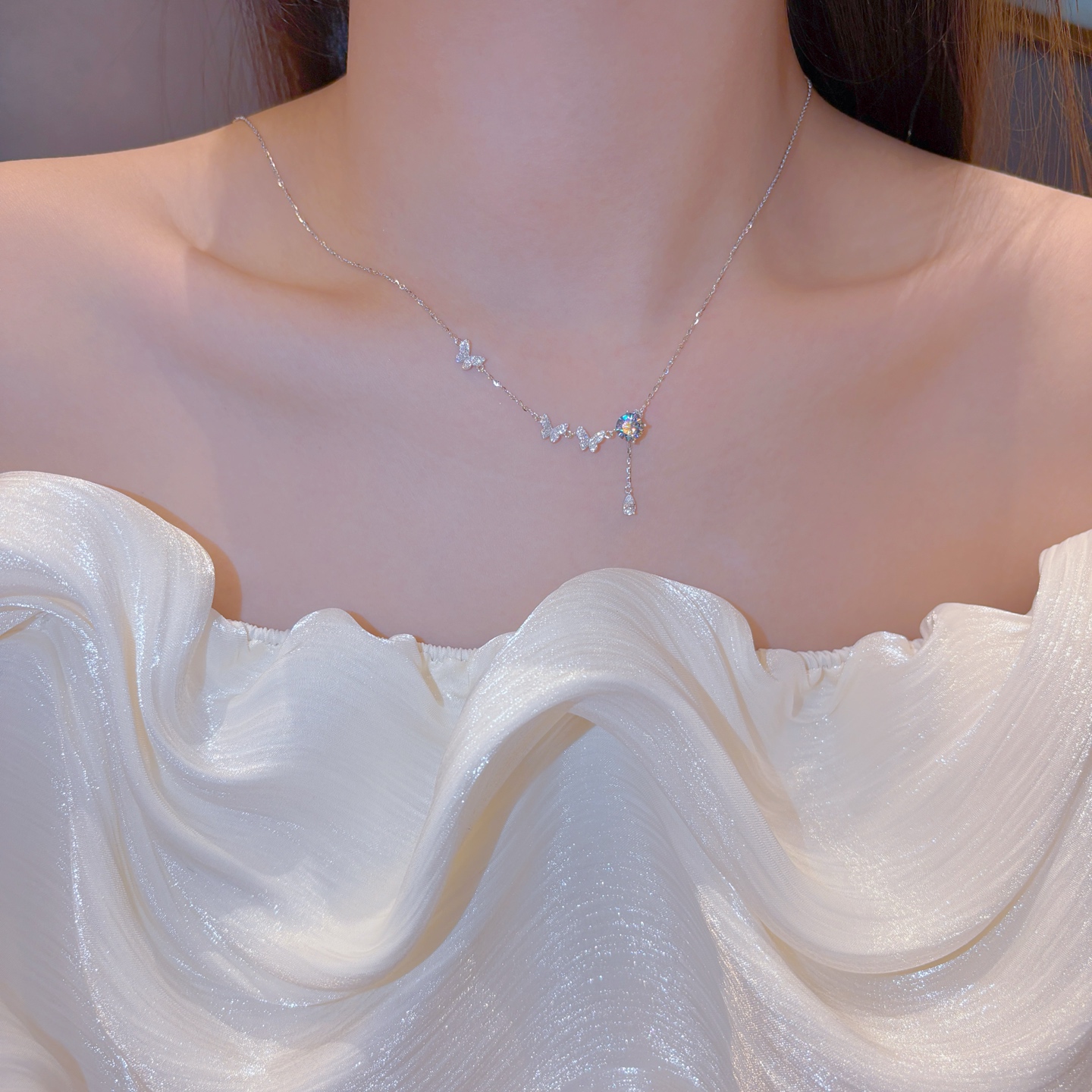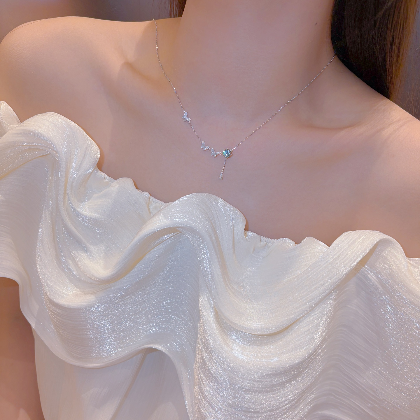 Nickel Free Silver Moissanite Necklace Cute Banquet Silver