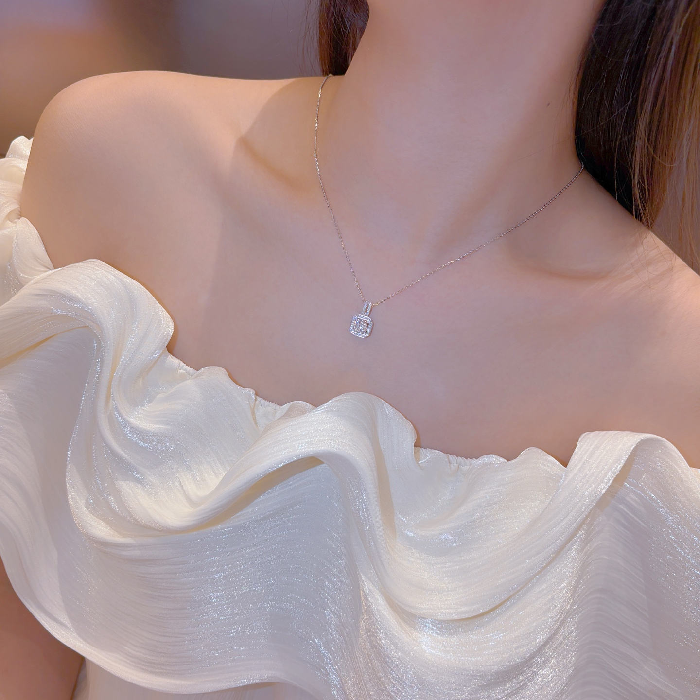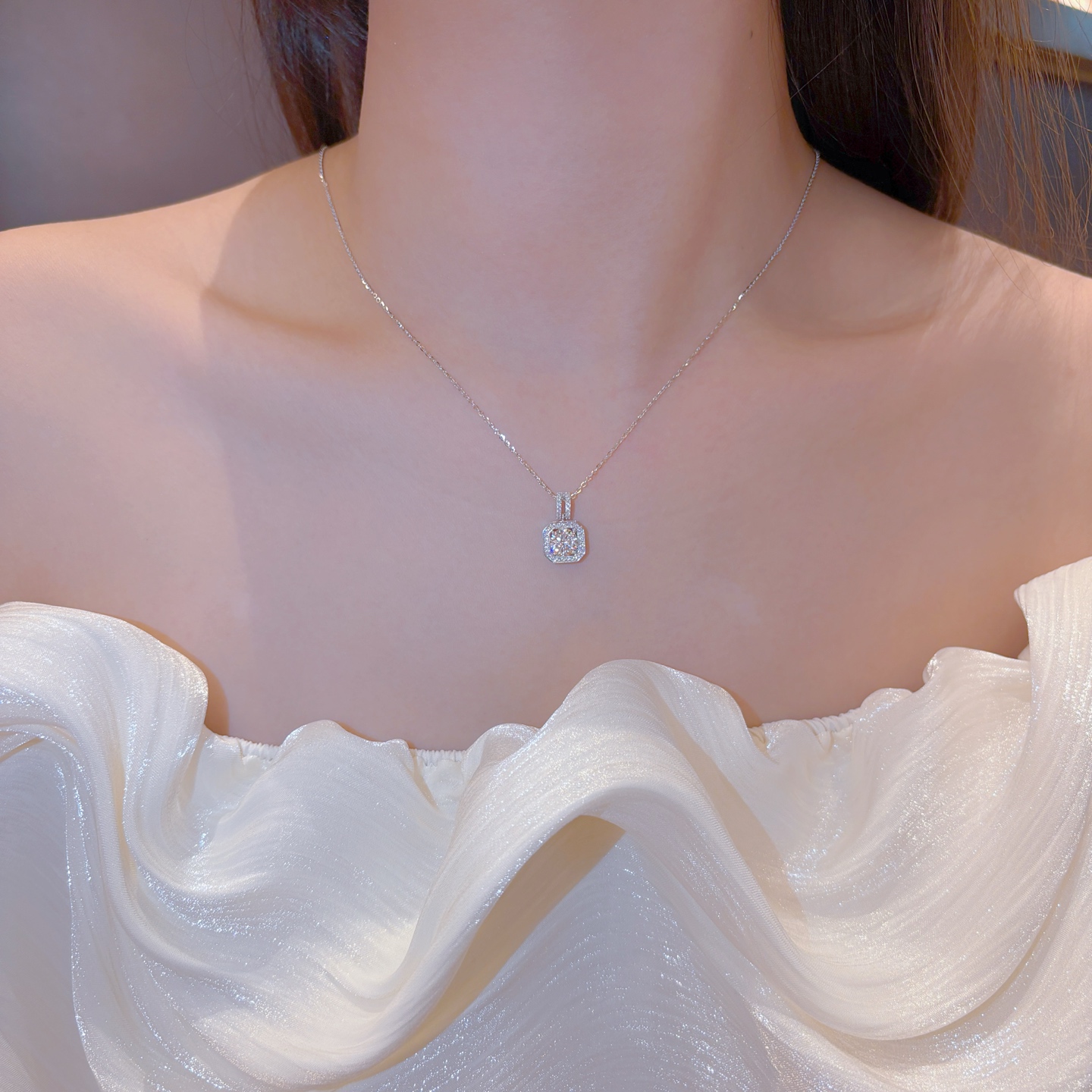 Hypoallergenic Silver Moissanite Necklace Soft Engagement Gold