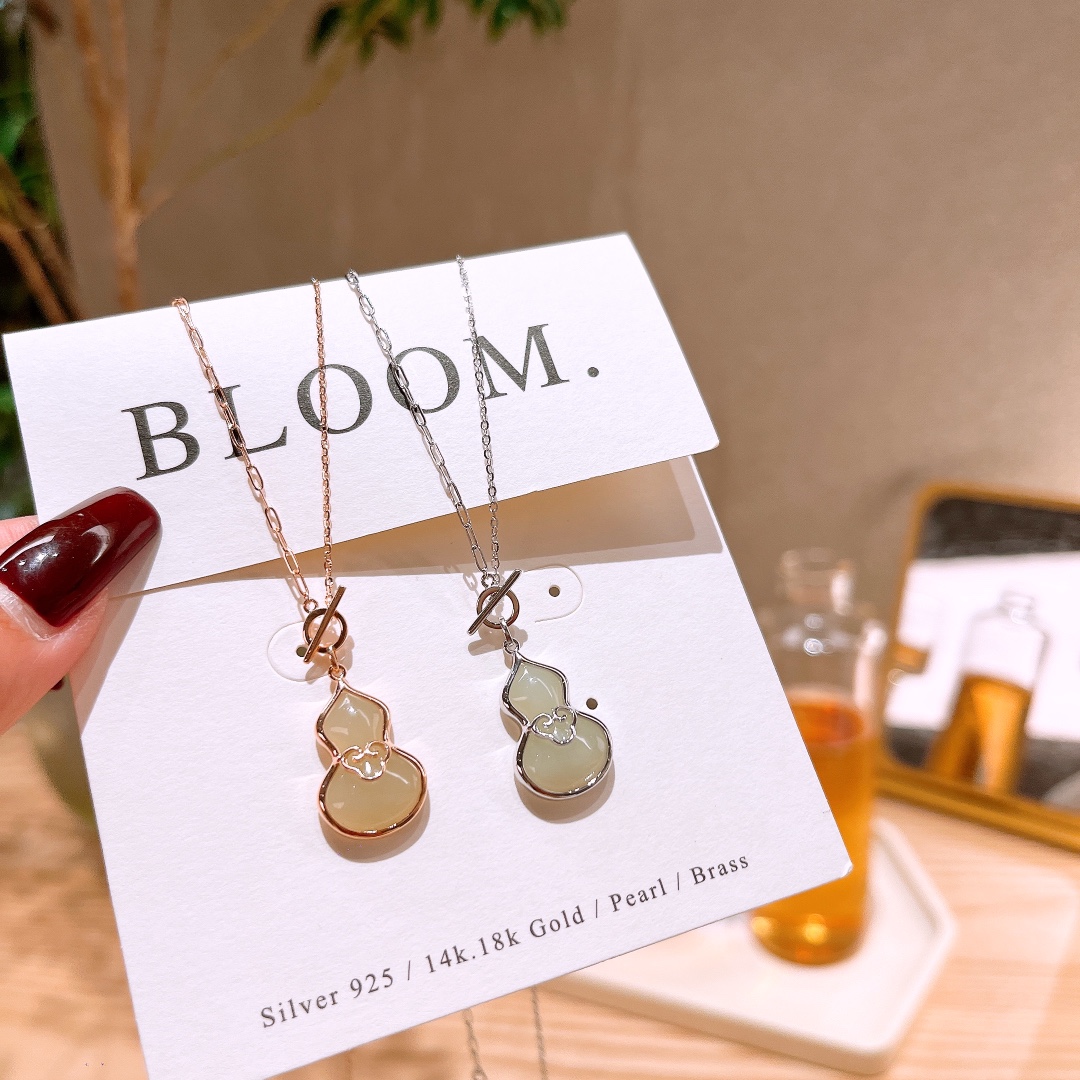Fine Silver Hetian Jade Necklace Lively Anniversary Gold