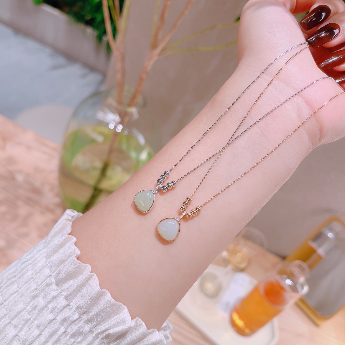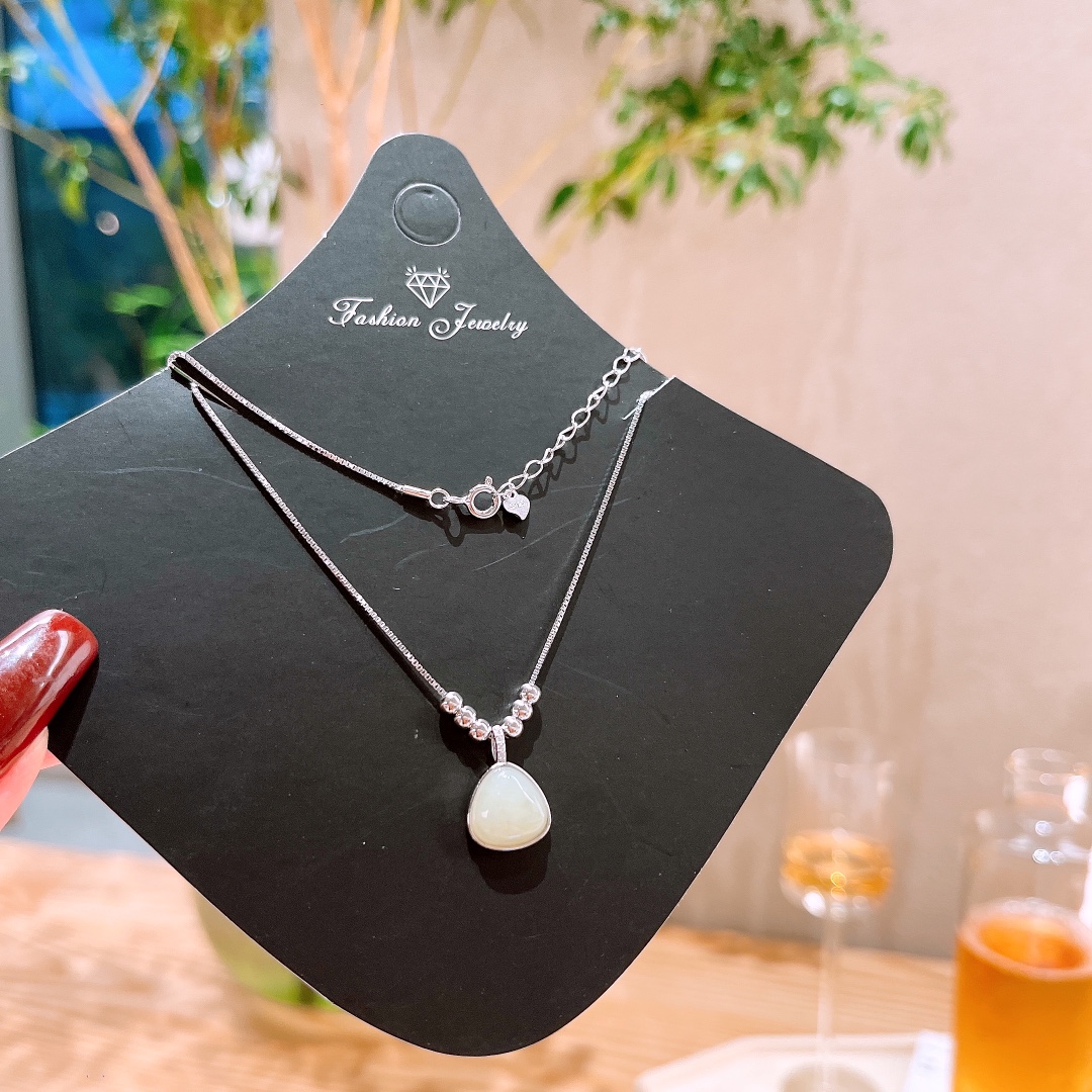 Solid Silver Hetian Jade Necklace Sweet & Cool Engagement Silver