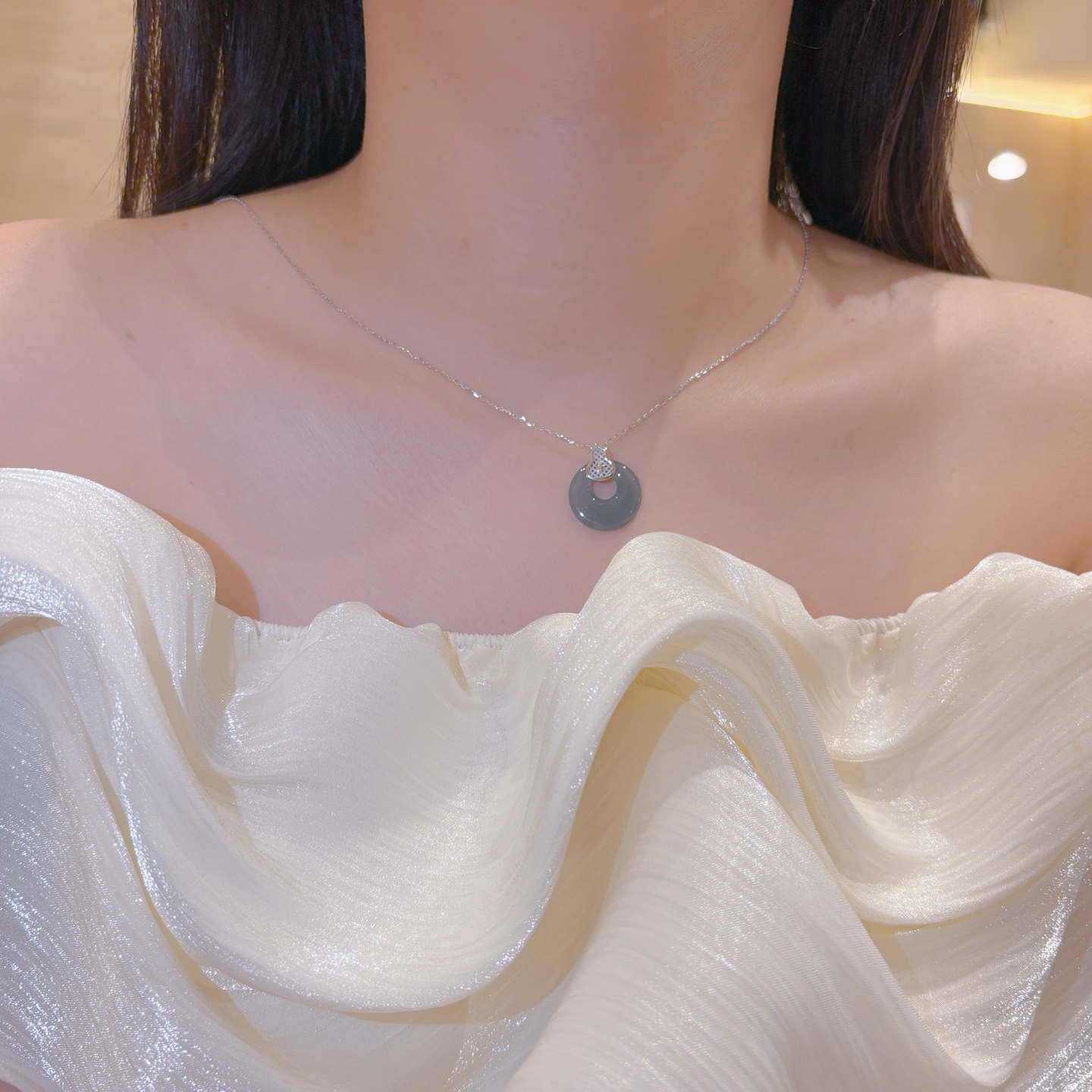 Nickel Free Silver Jadeite Necklace Romantic Office Silver