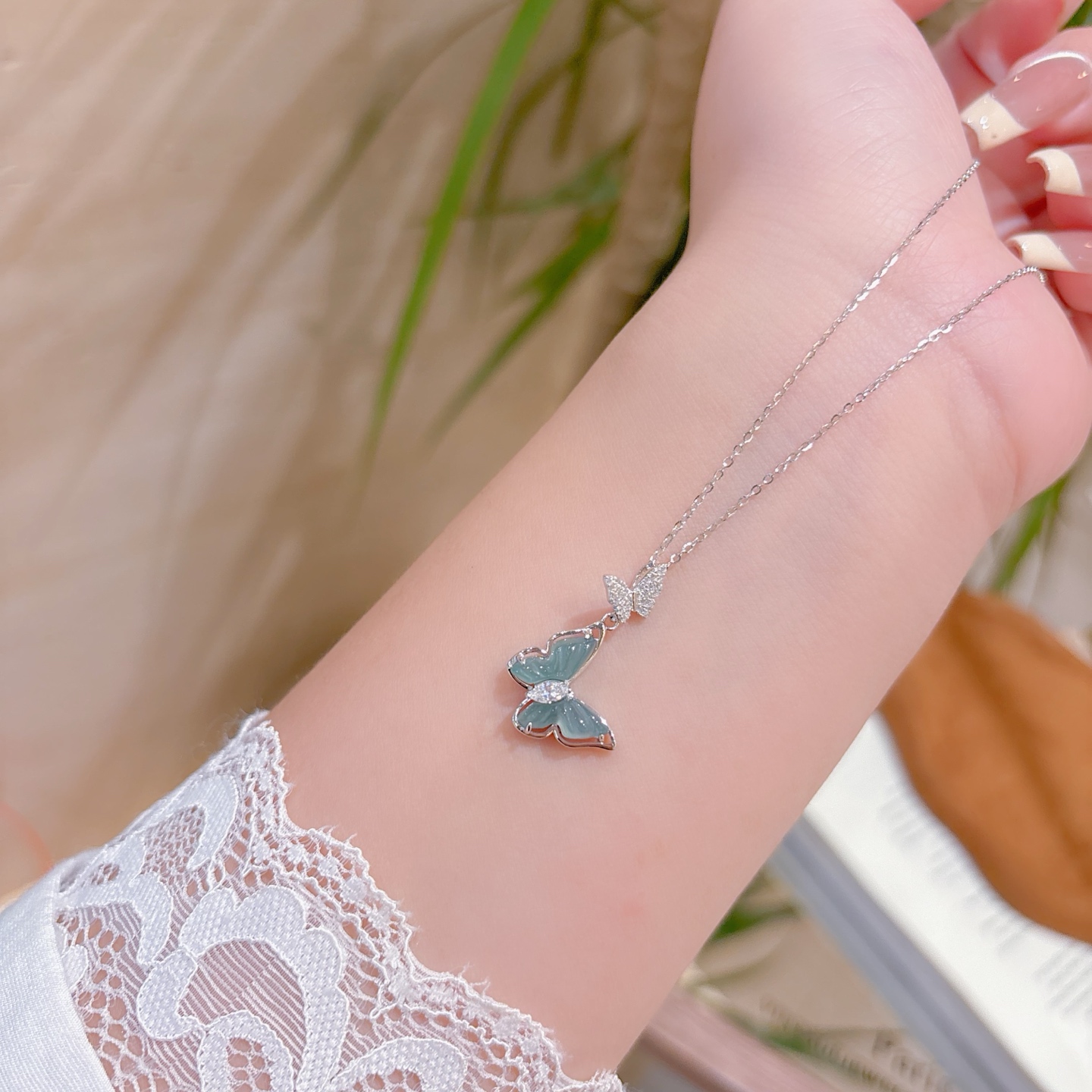 Solid Silver Jadeite Necklace Ethereal Teacher's Day Silver