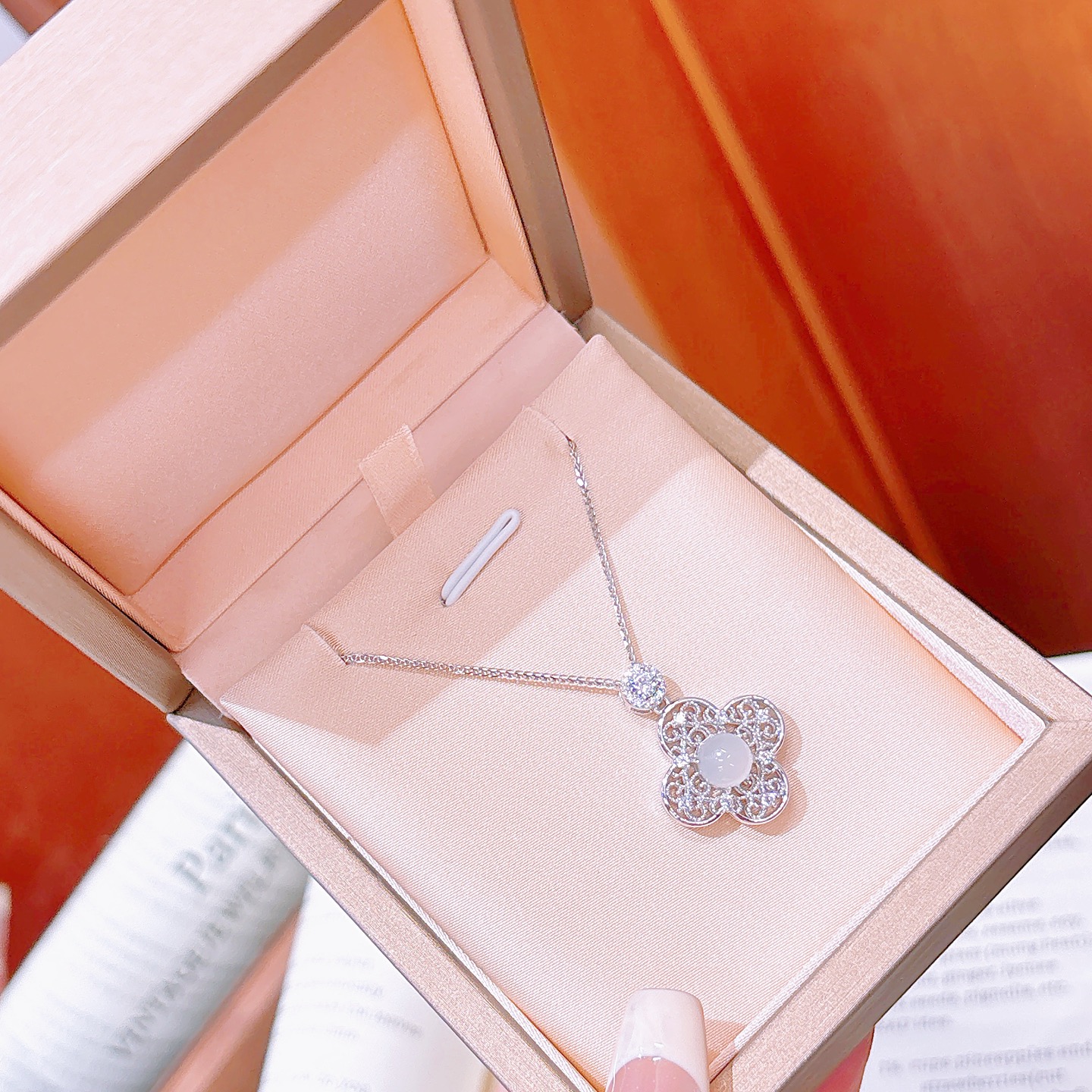 S925 Sterling Silver Hetian Jade Necklace French Party Silver