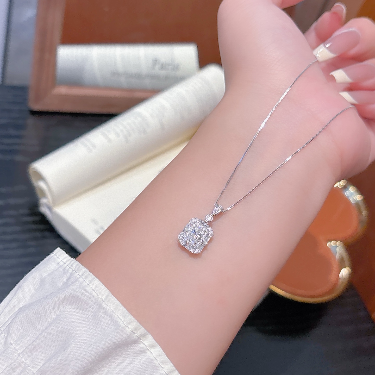Hypoallergenic Silver Moissanite Necklace Artistic Engagement Silver