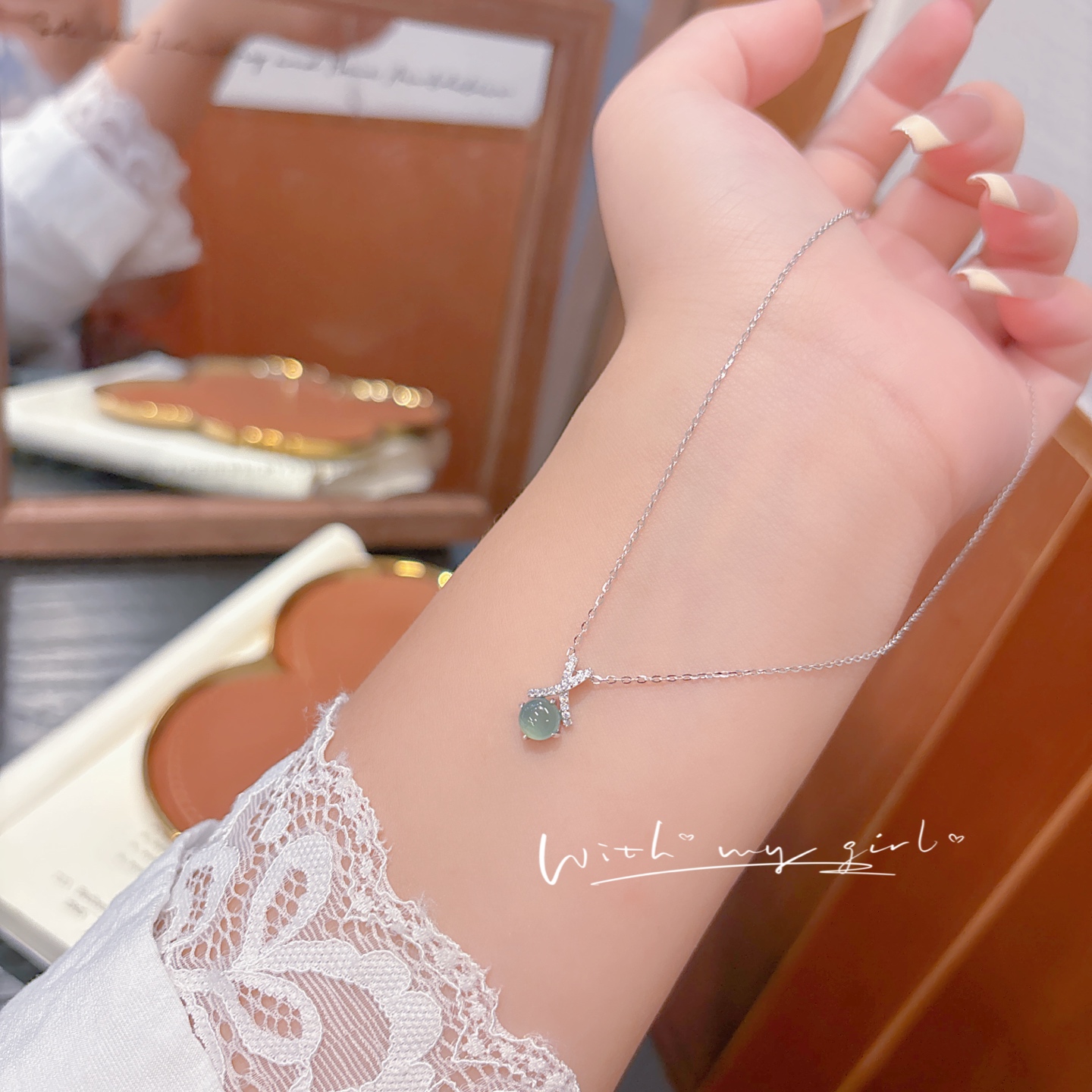 Solid Silver Jadeite Necklace Fashion Christmas Silver