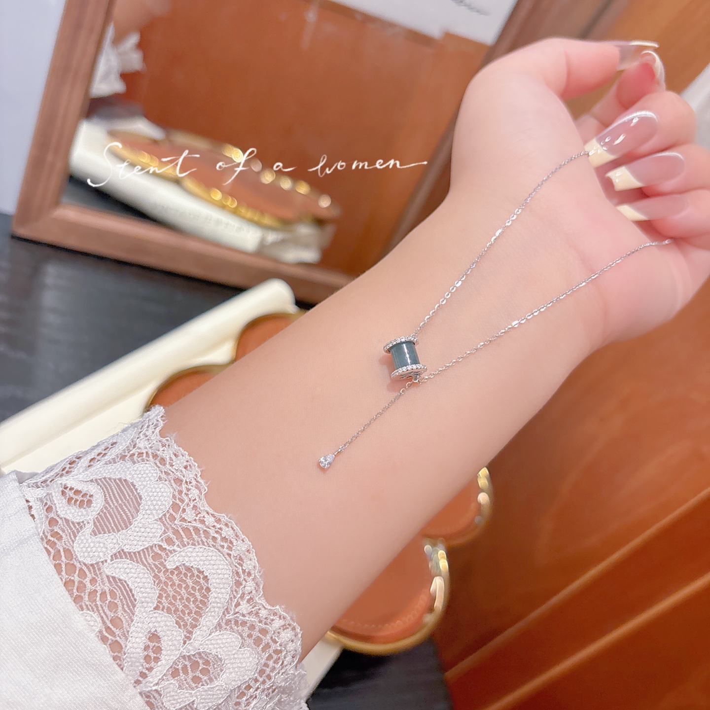 S925 Sterling Silver Jadeite Necklace Gentle Engagement Gold