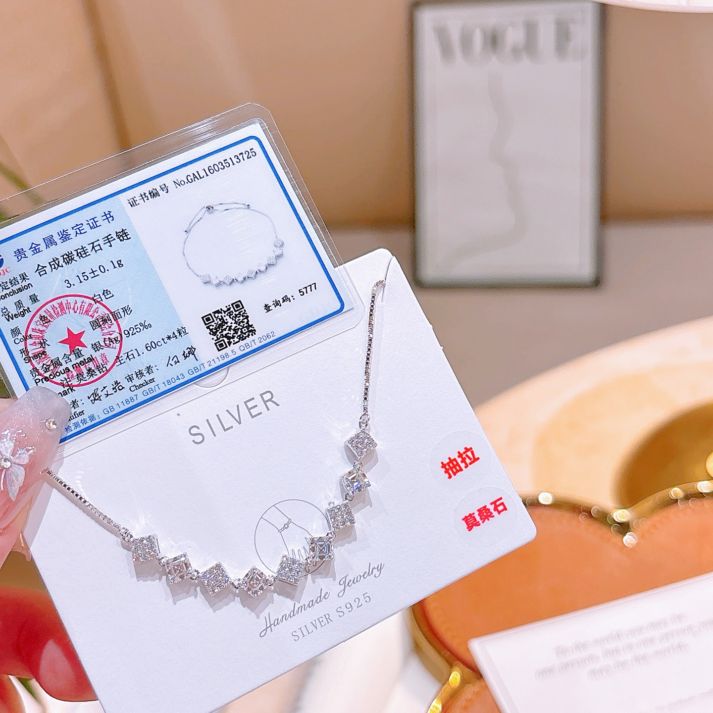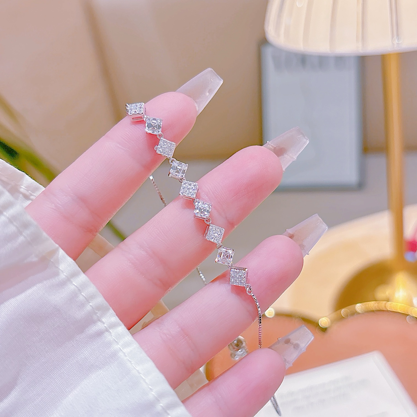 Nickel Free Silver Moissanite Bracelet Unique Banquet Gold