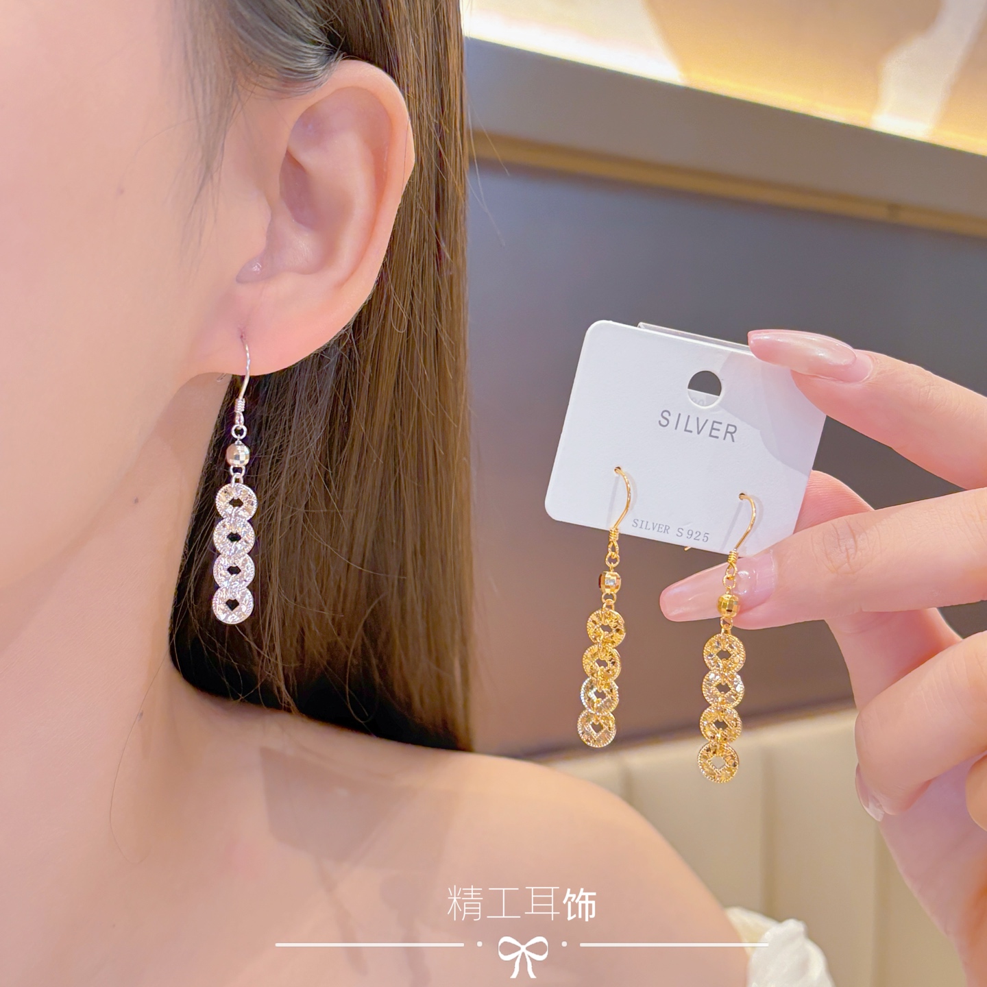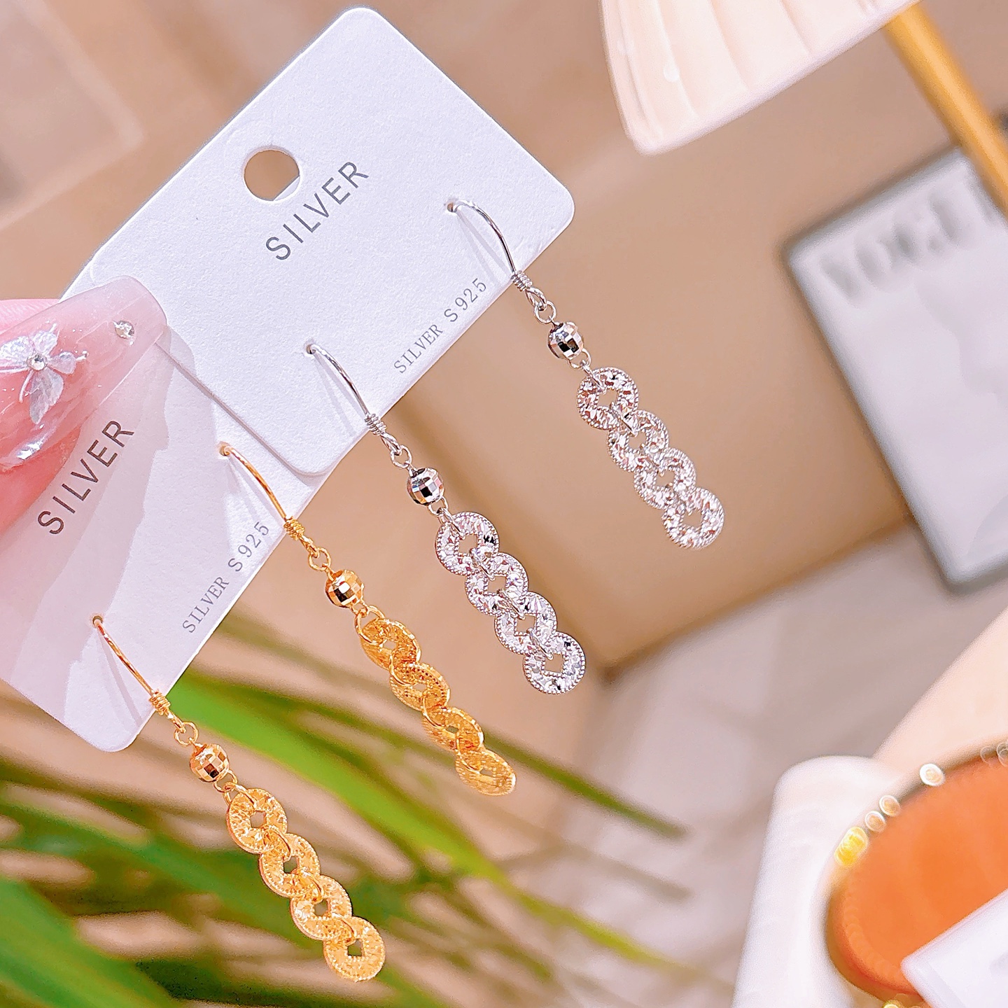 925 Silver Drop & Thread Earrings Dainty Housewarming Gold