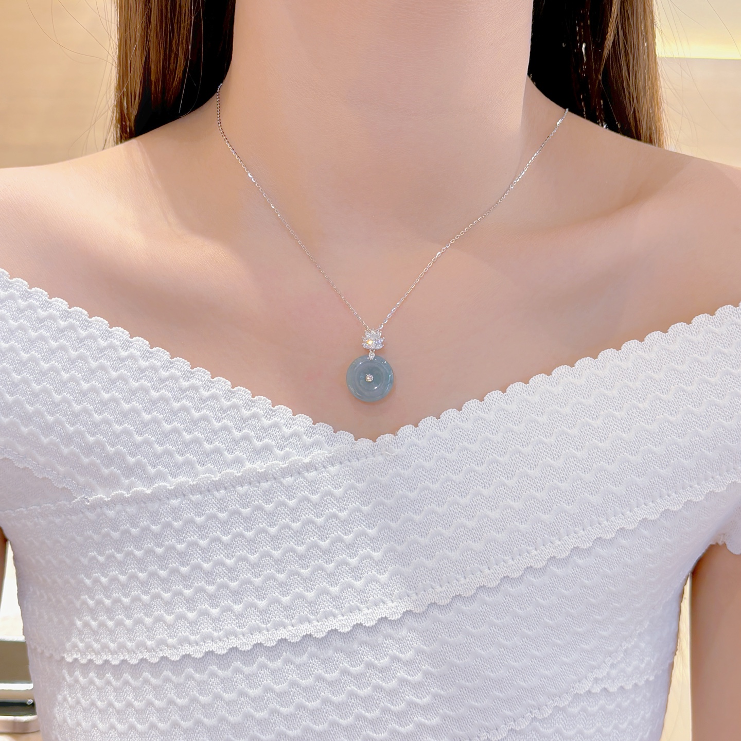 High Polish Silver Jadeite Necklace Gentle Teacher's Day Silver