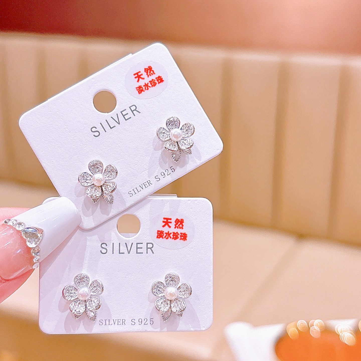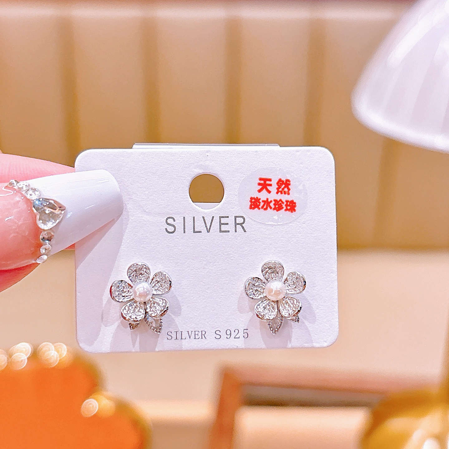 Solid Silver Freshwater Pearl Studs Light Luxury Anniversary Silver
