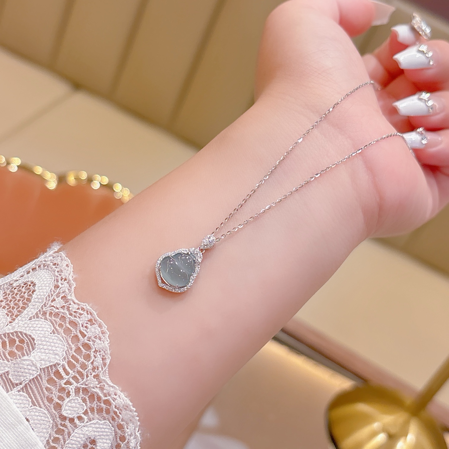 Low Allergy Silver Jadeite Necklace Ins Style New Year Gold