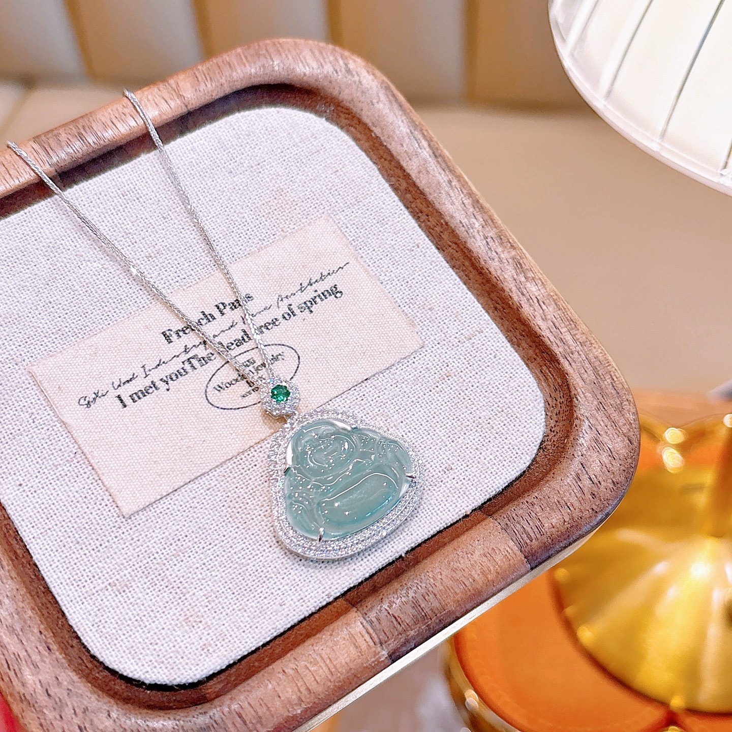 Low Allergy Silver Jadeite Necklace Girly Mother's Birthday Gold