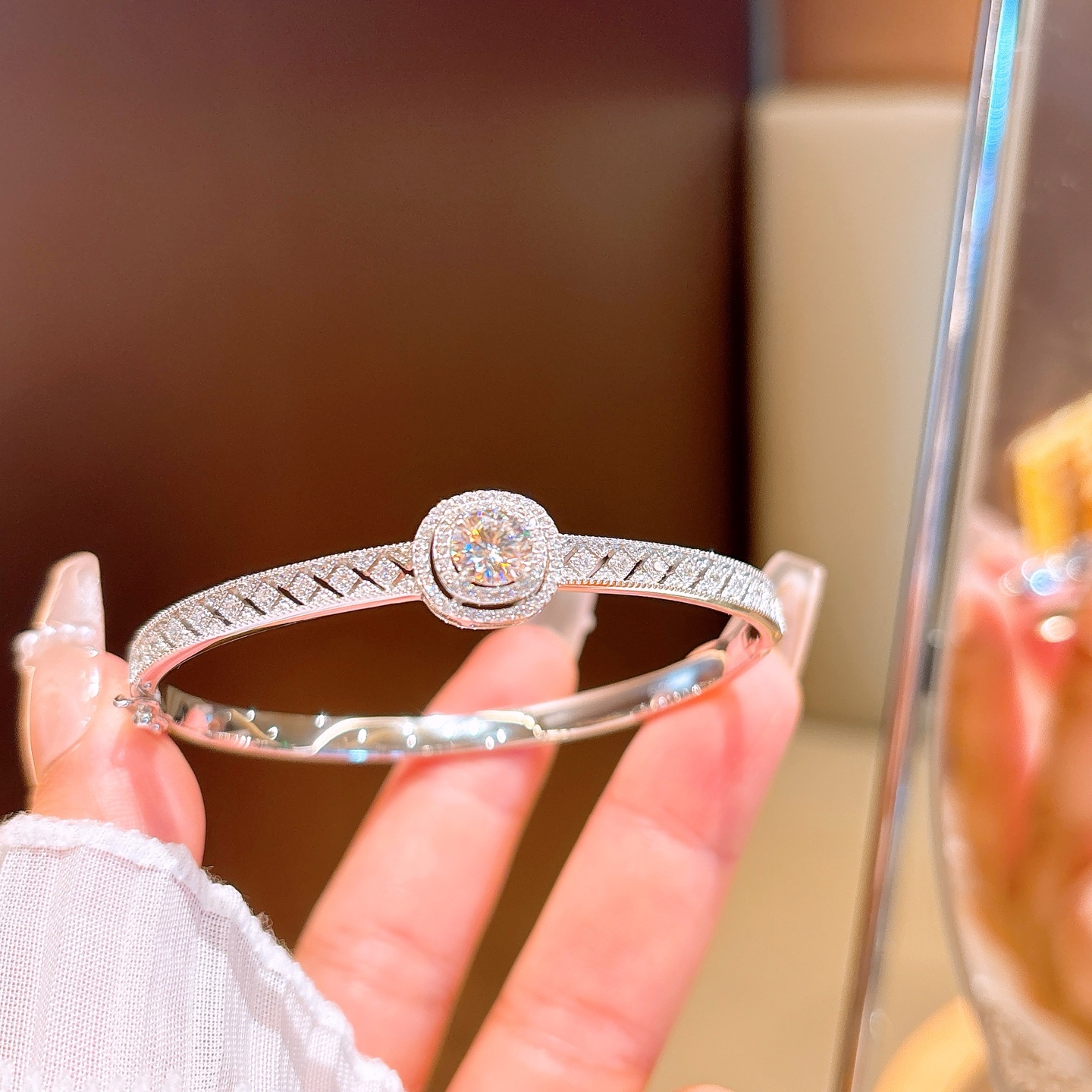 Low Allergy Silver Moissanite Bangle Romantic Office Gold