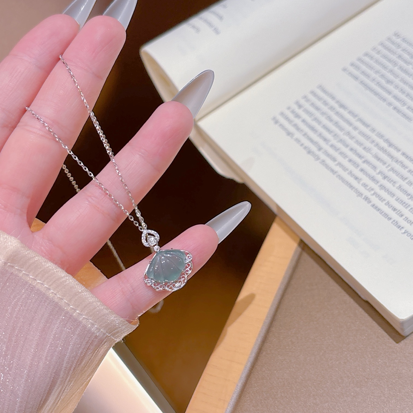 森ガール高品質シルバーヒスイネックレスゴールド 日常使い