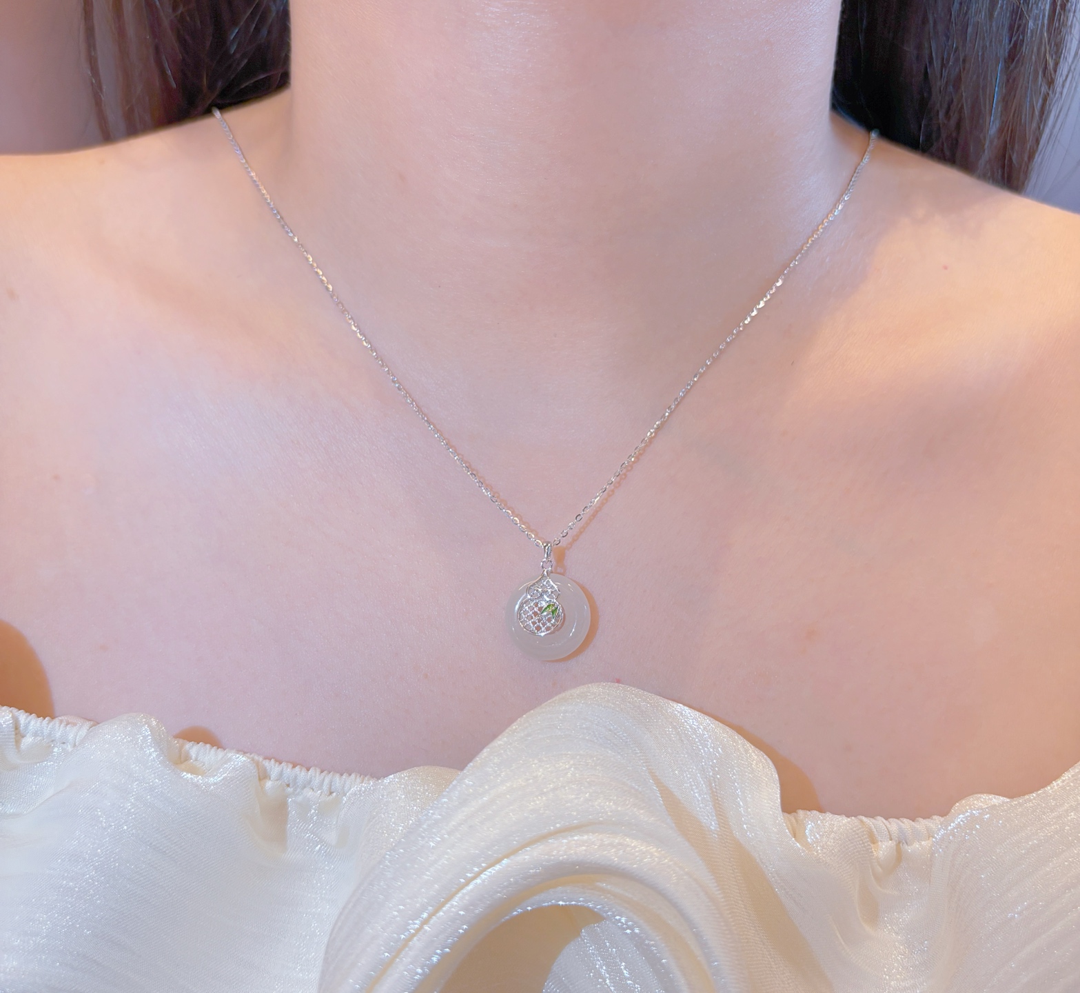 S925 Sterling Silver Hetian Jade Necklace Ethereal Wedding Registration