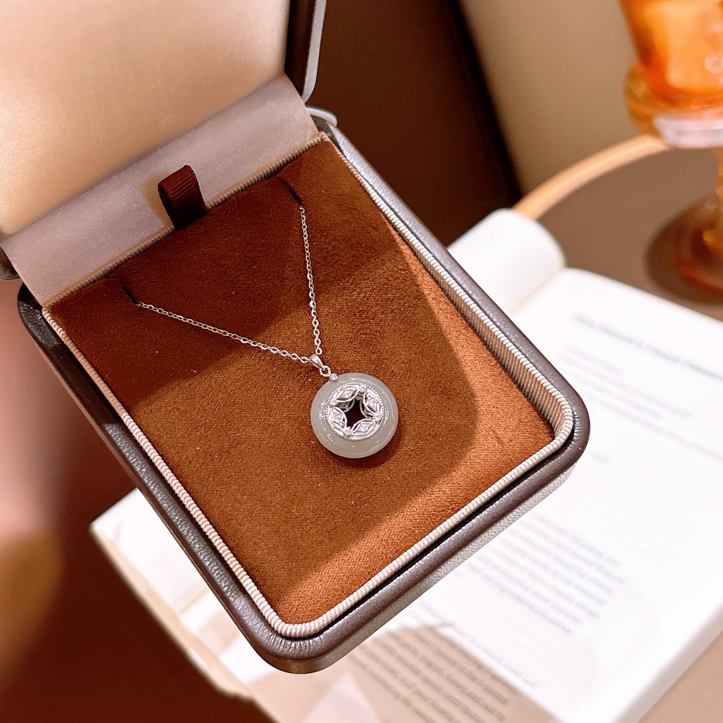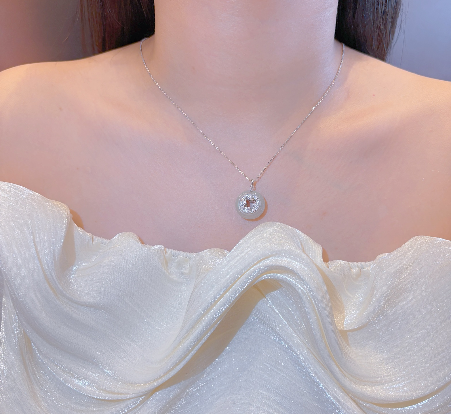 Solid Silver Hetian Jade Necklace Elegant Wedding Silver