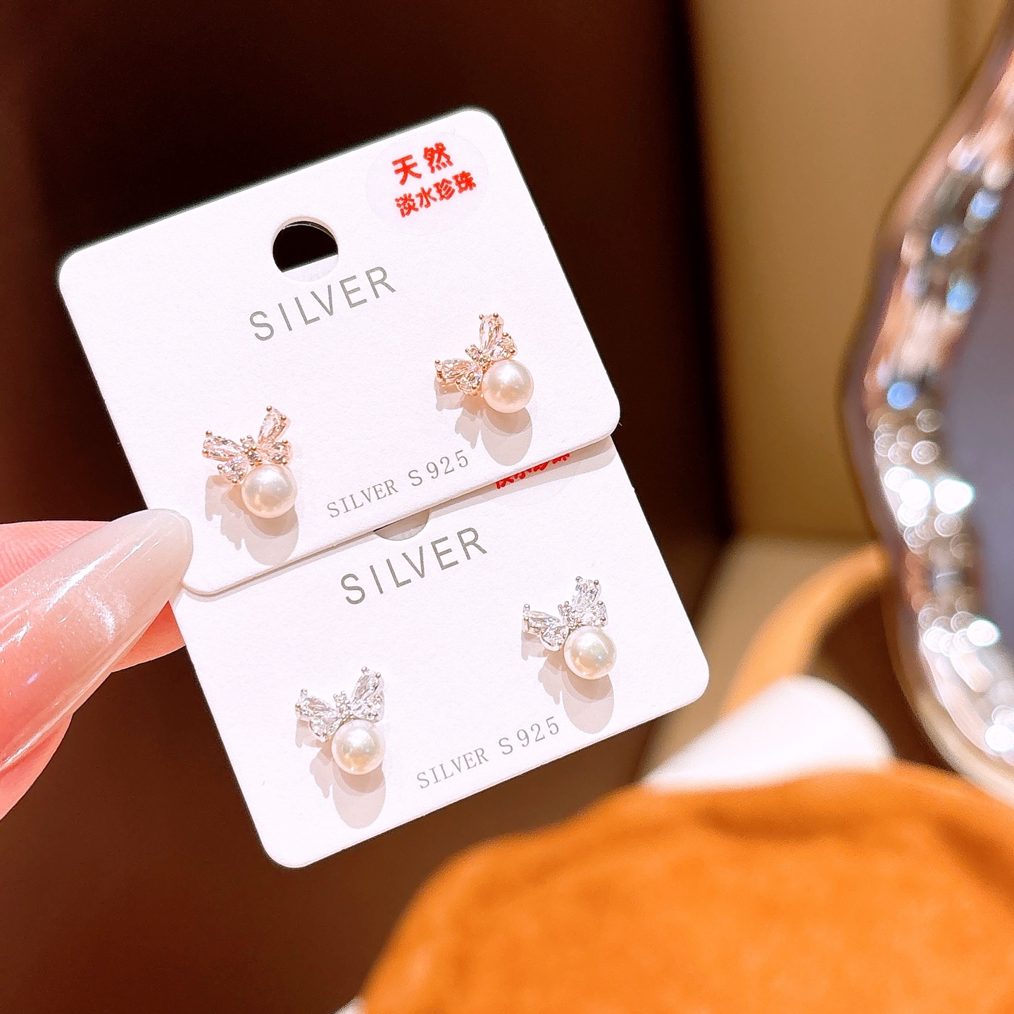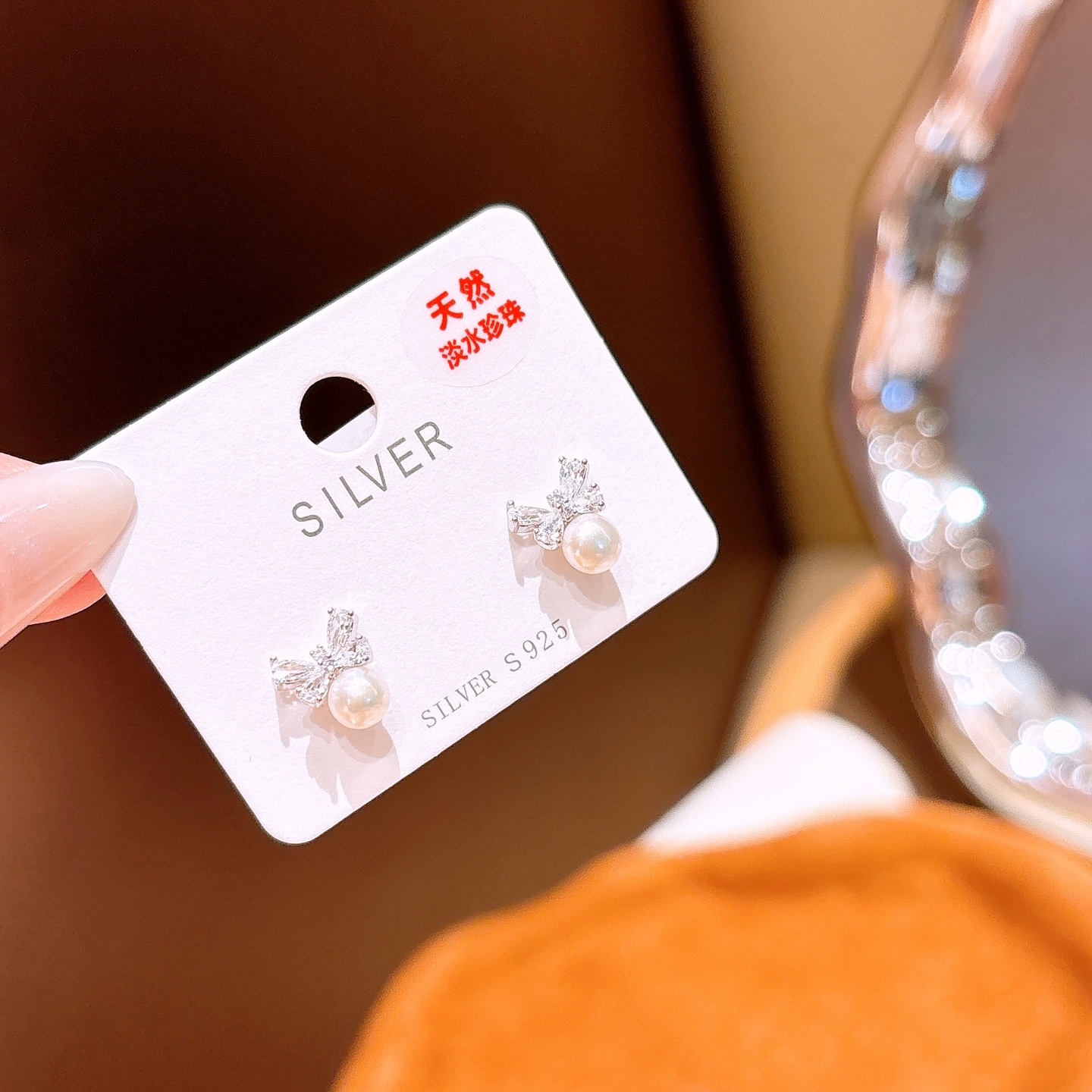 High Polish Silver Freshwater Pearl Studs Romantic Teacher's Day