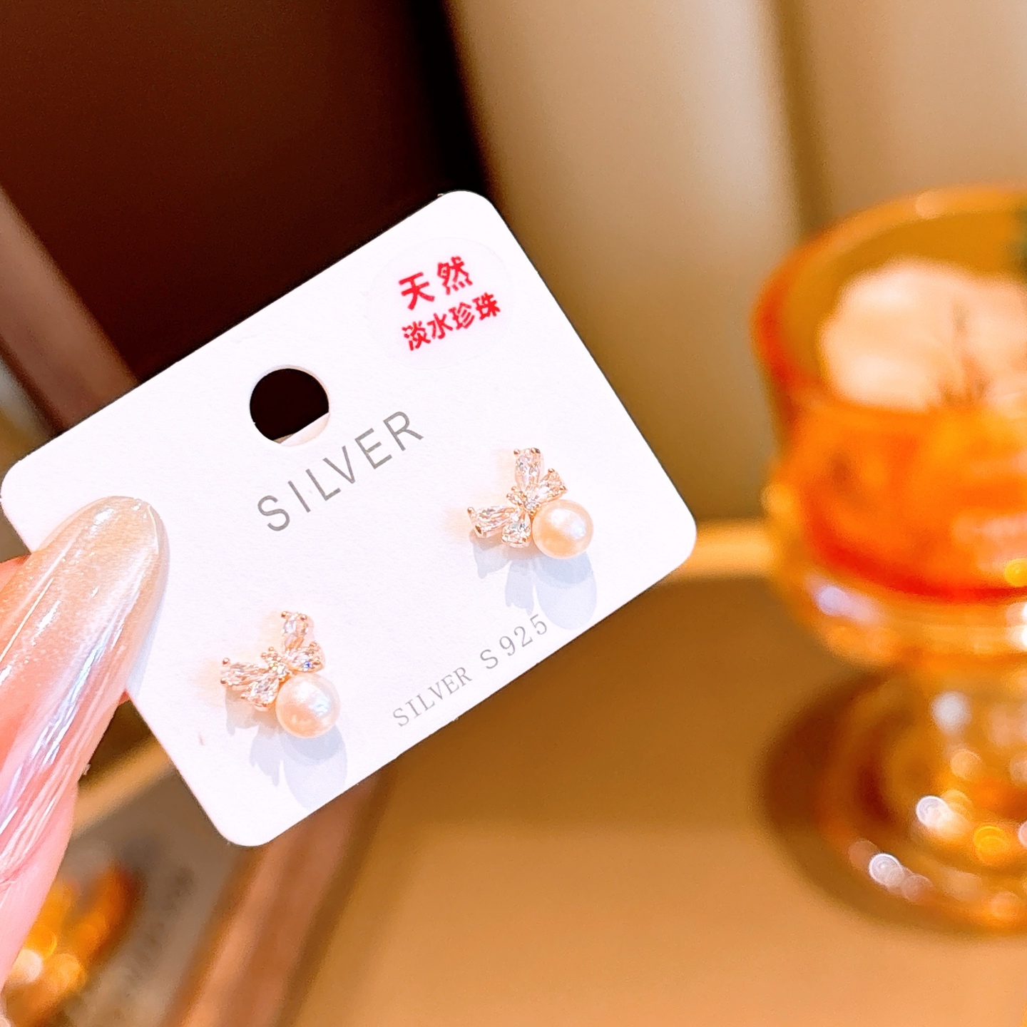 Solid Silver Freshwater Pearl Studs Korean Style Confession Silver