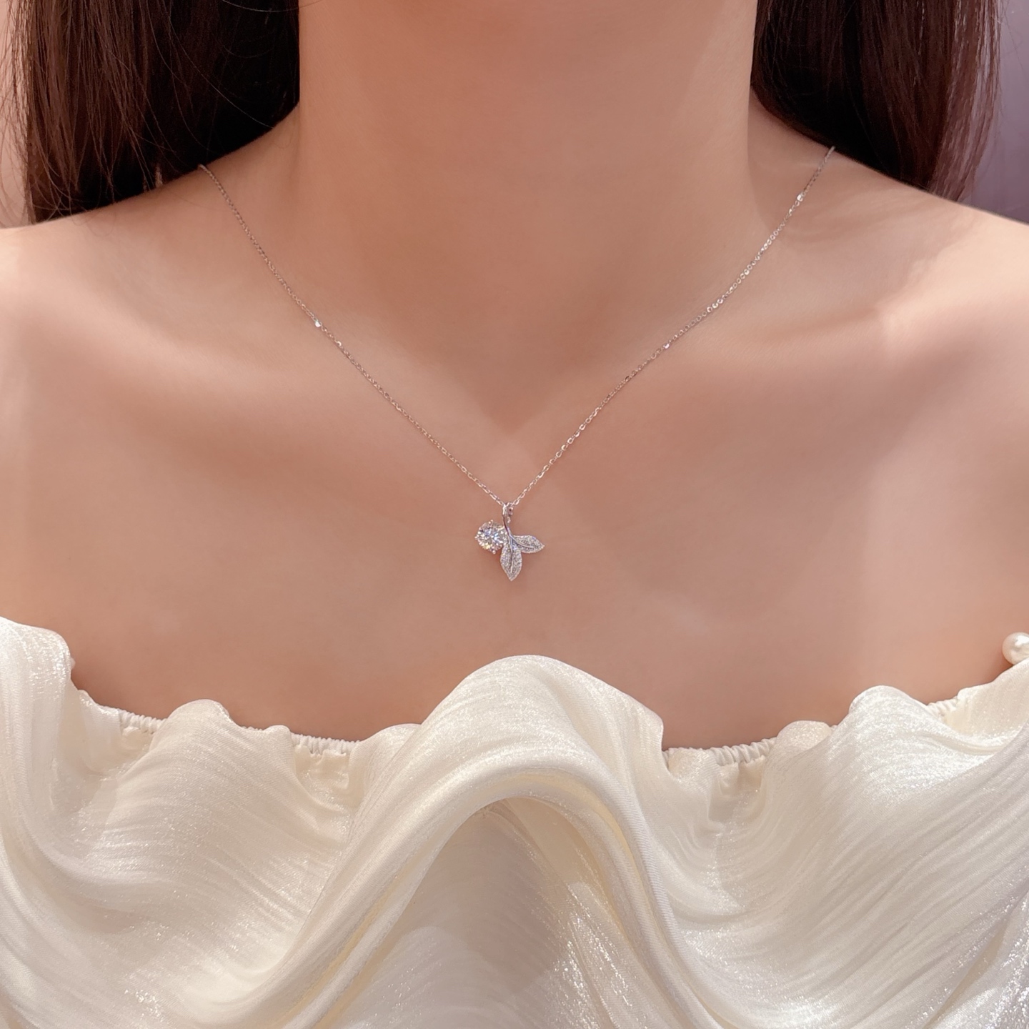 Low Allergy Silver Moissanite Necklace Minimalist Engagement Gold