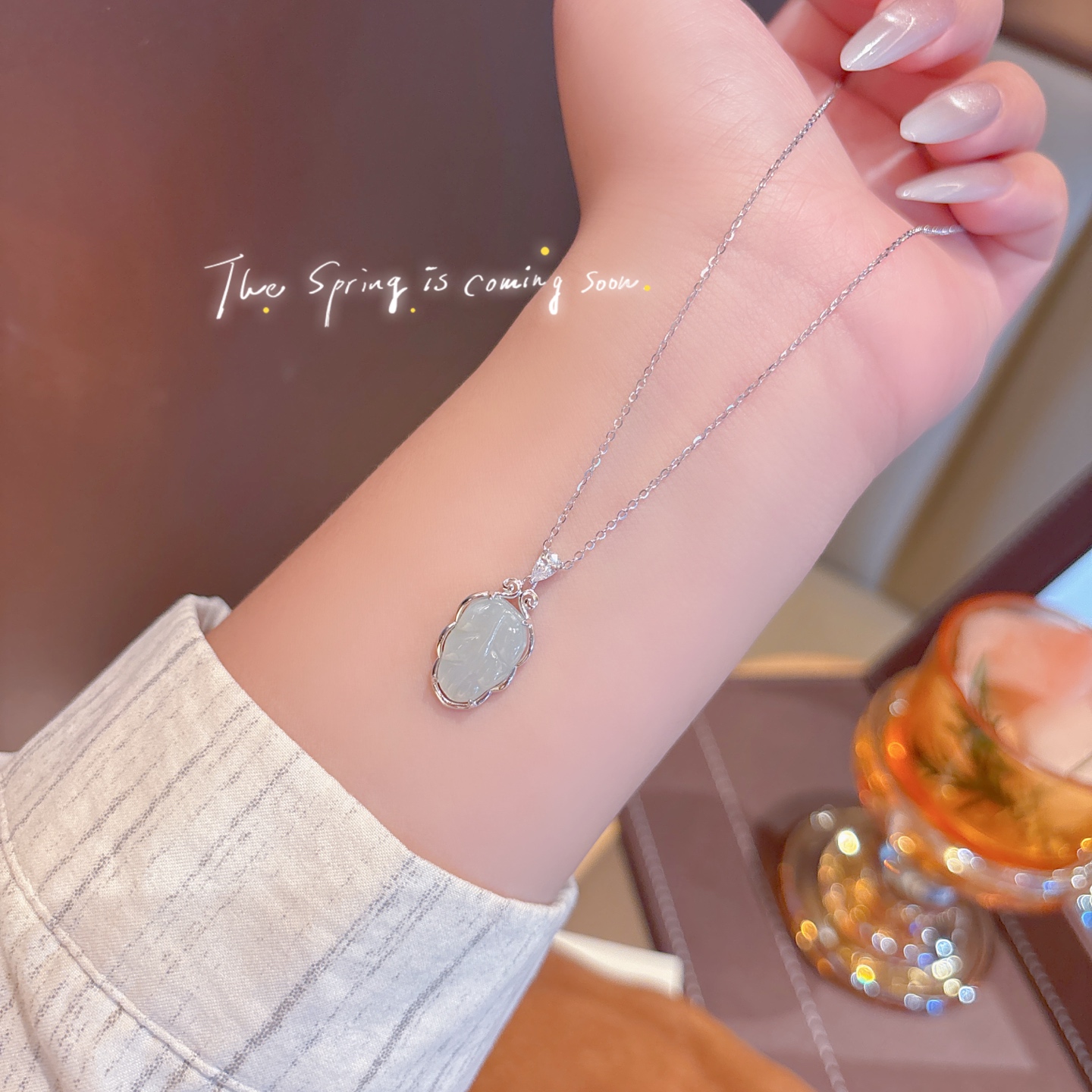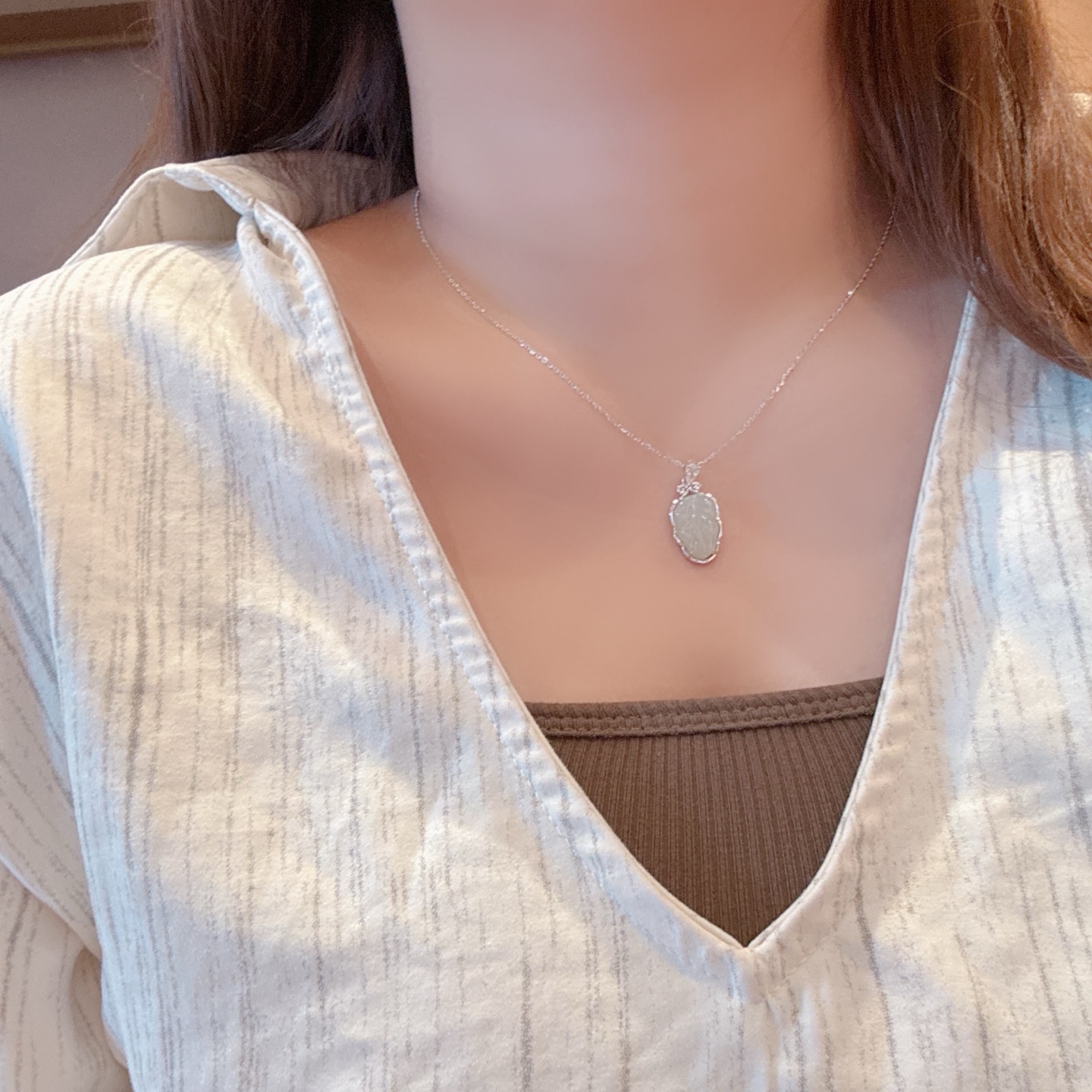 Fine Silver Hetian Jade Necklace Delicate Everyday Wear Gold