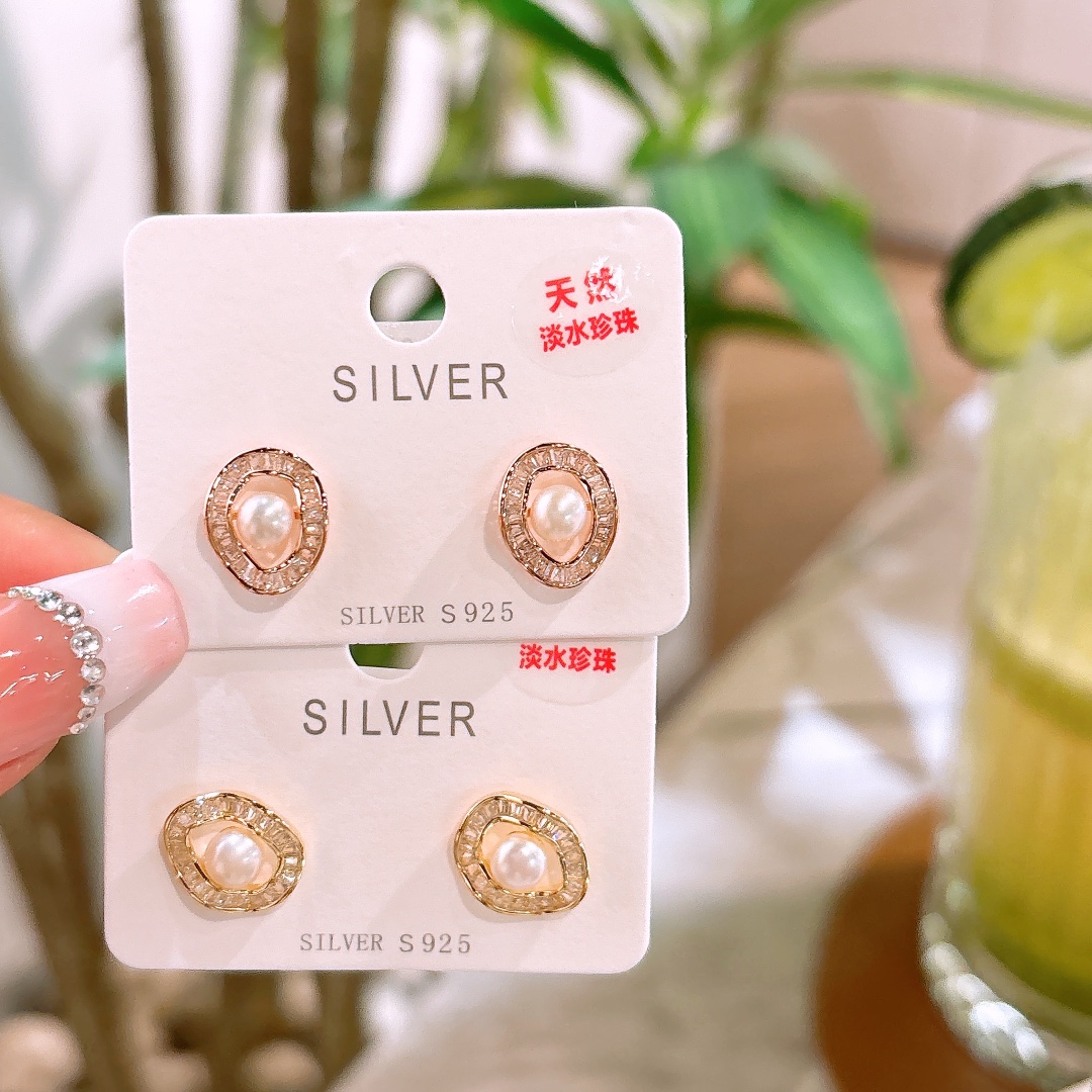 Solid Silver Freshwater Pearl Studs Soft Graduation Gold