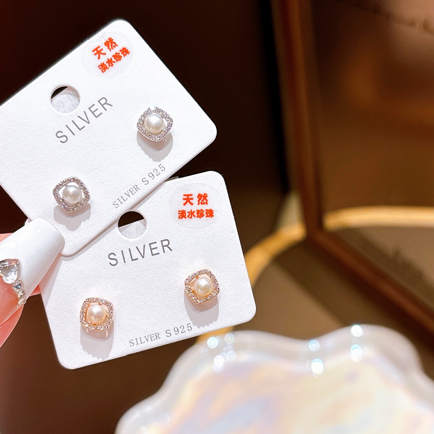 925 Silver Freshwater Pearl Studs Artistic Teacher's Day Silver