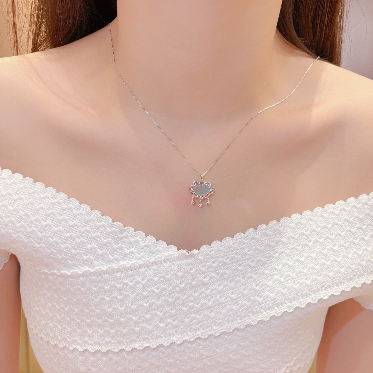 925 Silver Jadeite Necklace Fashion Valentine's Day Gold