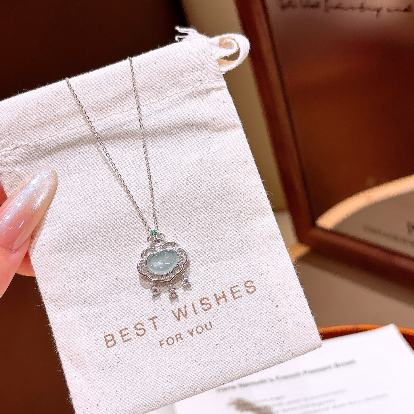 S925 Sterling Silver Jadeite Necklace Premium Graduation Silver