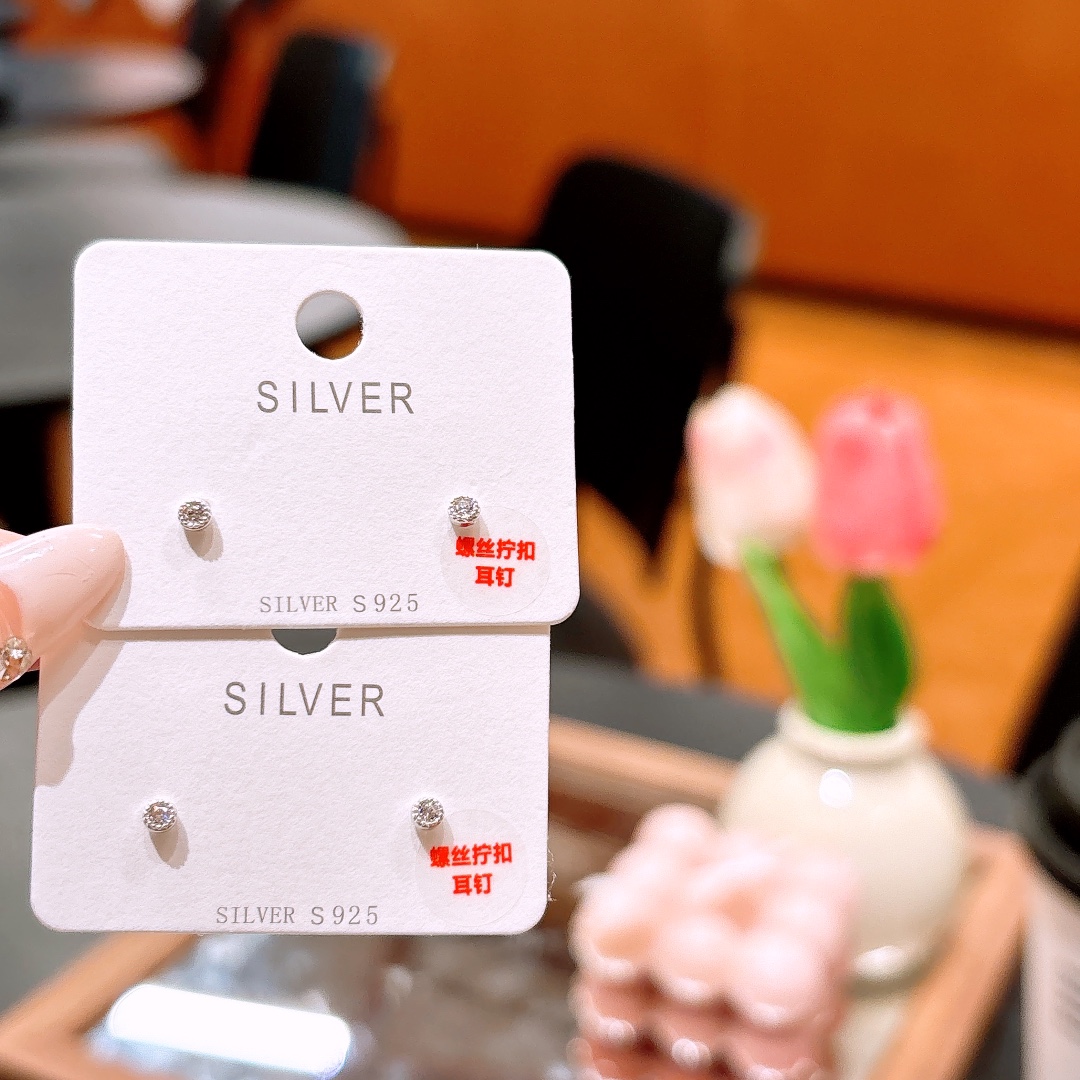 S925 Sterling Silver Screw-back Studs Fashion Date Night Gold