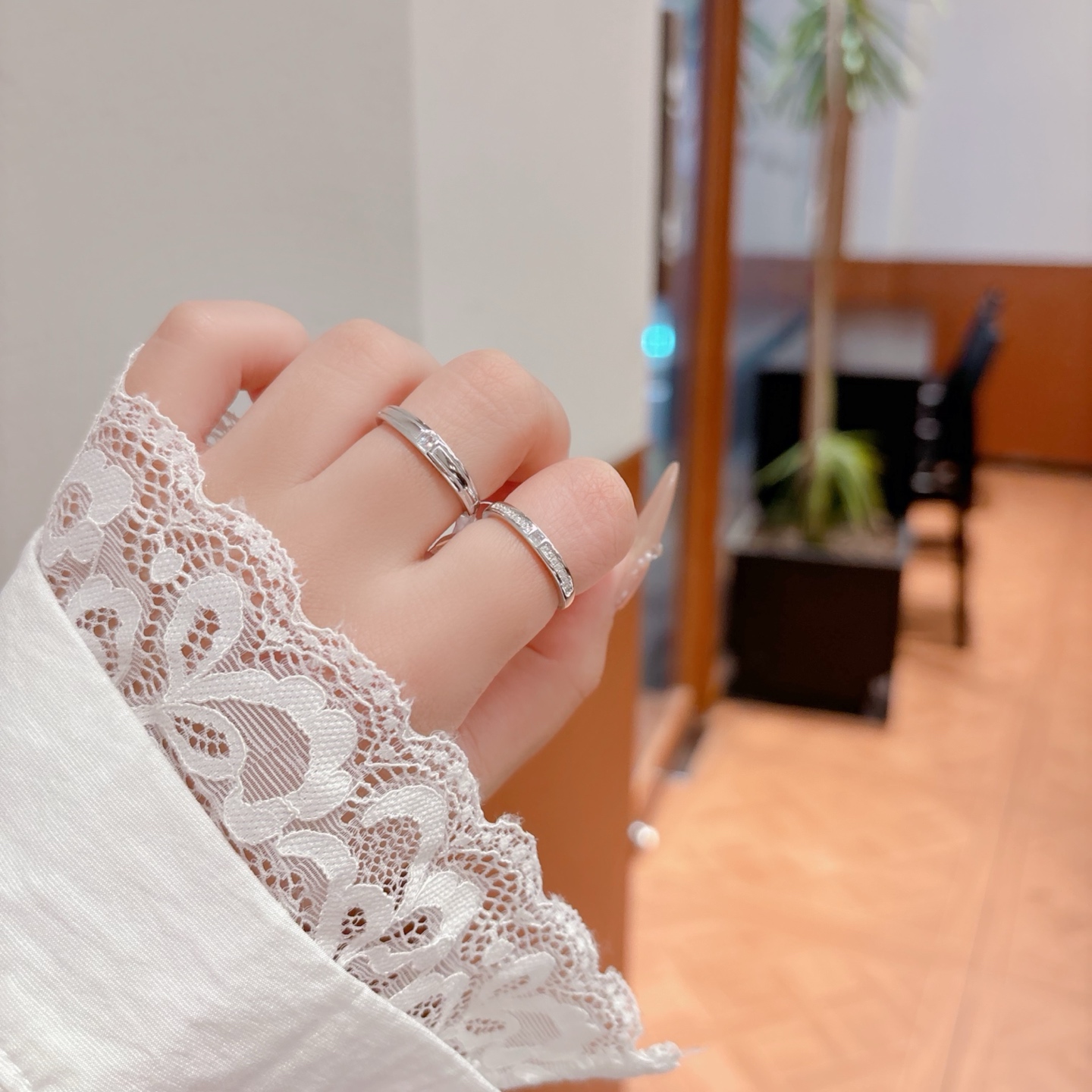 High Polish Silver Couple Rings Light Luxury Annual Party Gold